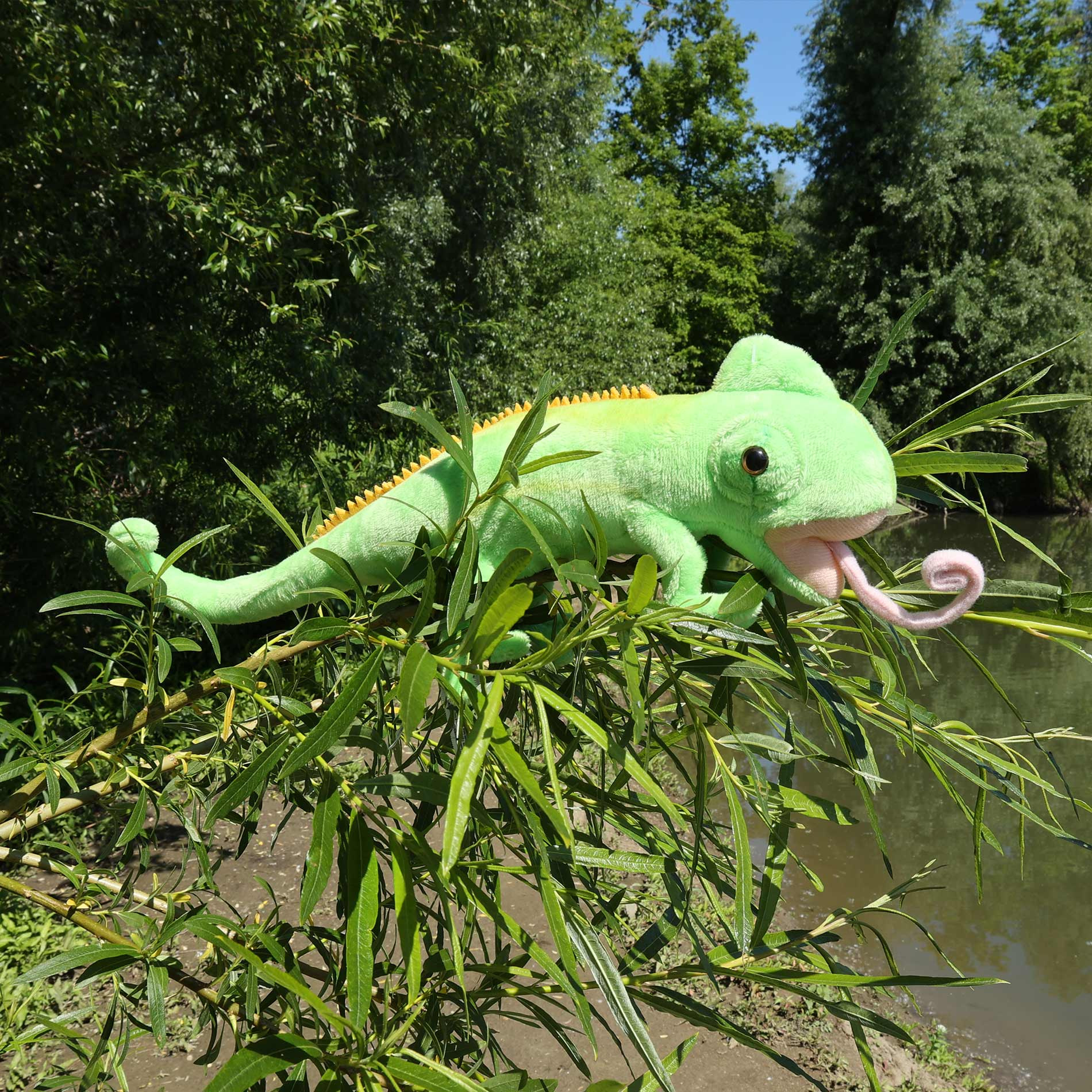 Plyšový chameleon měří 34 cm a díky těm nejkvalitnějším materiálům se řadí do Exkluzivní kolekce plyšových hraček značky Rappa. Díky ručnímu zpracování každého kusu navíc vypadá jako živý. Proč označení ECO-FRIENDLY? Rappa si je vědoma všech dopadů na životního prostředí, zaměřuje se na udržitelnost a omezení používání plastů na minimum. Proto je výplň hraček vyrobena z recyklovaných materiálů, zejména PET lahví. Ta je však zcela nezávadná a vhodná i pro děti od narození. FUN FACT: Věděli jste, že chameleoni mění barvu nejen pro maskování, ale hlavně kvůli komunikaci, regulaci teploty a díky speciálním nanokrystalům v kůži, které odrážejí různé vlnové délky světla?