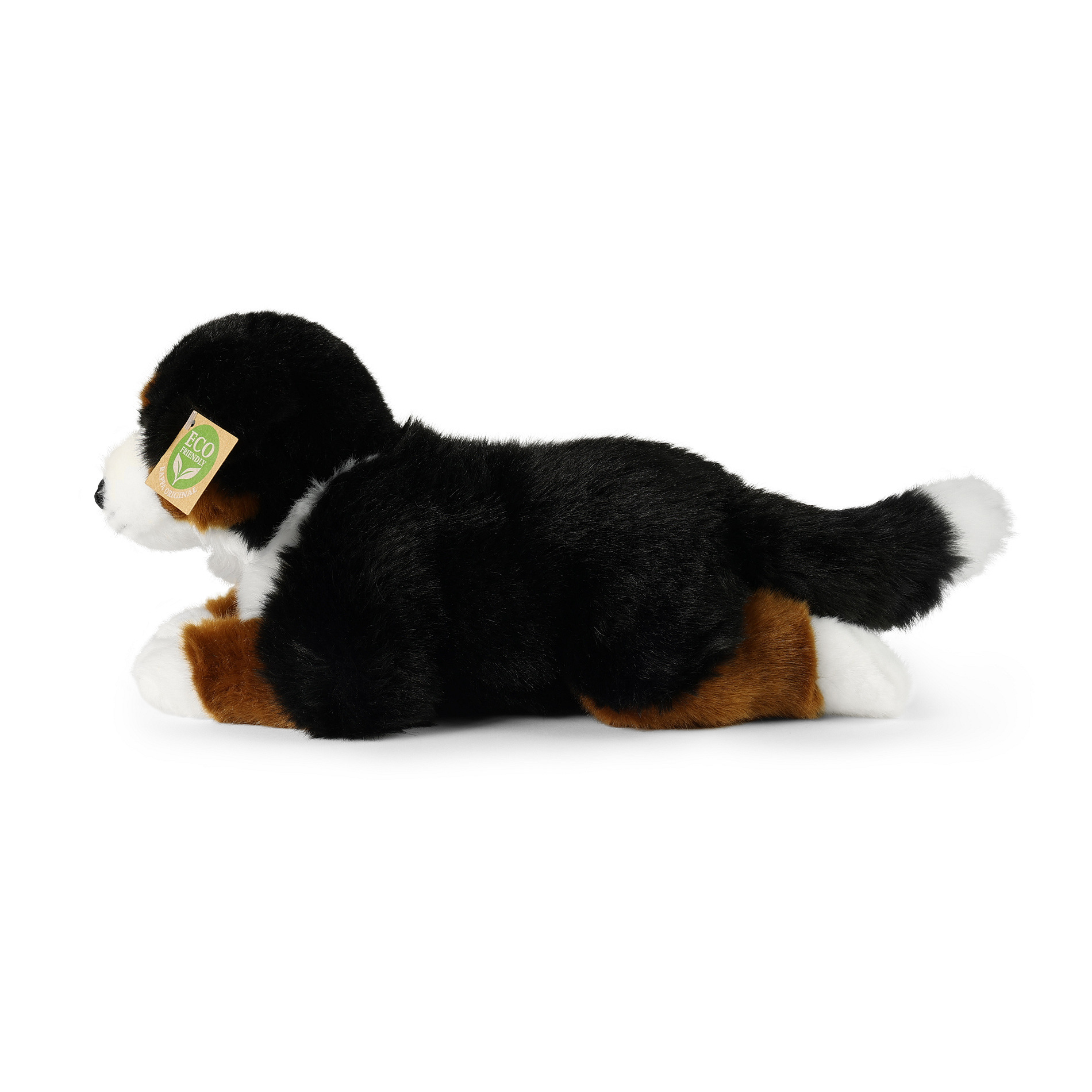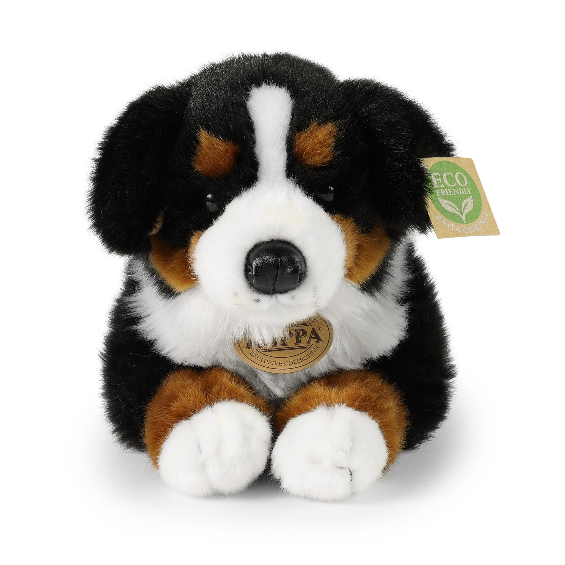Plyšový pes rasy bernský salašnický měří 34 cm a díky těm nejkvalitnějším materiálům se řadí do Exkluzivní kolekce plyšových hraček značky Rappa. Díky ručnímu zpracování každého kusu navíc vypadá jako živý. Proč označení ECO-FRIENDLY? Rappa si je vědoma všech dopadů na životního prostředí, zaměřuje se na udržitelnost a omezení používání plastů na minimum. Proto je výplň hraček vyrobena z recyklovaných materiálů, zejména PET lahví. Ta je však zcela nezávadná a vhodná i pro děti od narození. FUN FACT: Věděli jste, že bernský salašnický díky své přátelské a trpělivé povaze, je často označován za "mírného obra" a skvěle se hodí jako rodinný pes?