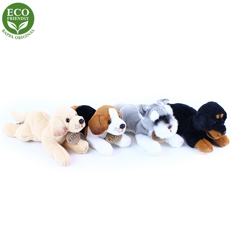 Plyšoví ležící pejsci o velikosti 22 cm. Stačí si jen vybrat! Chceš mít bígla, fouska, labradora nebo rotvajlera? Co to vlastně ECO-FRIENDLY znamená? Výplň plyšové hračky je vyrobena z recyklovaných PET lahví. Tento materiál je zcela bezpečný, na omak nerozeznatelný od standardní výplně a plně atestovaný pro bezpečnost i těch nejmenších. Rozhodli jsme se jít zelenou cestou co nejméně zatěžující životní prostředí- cestou ECO-FRIENDLY.