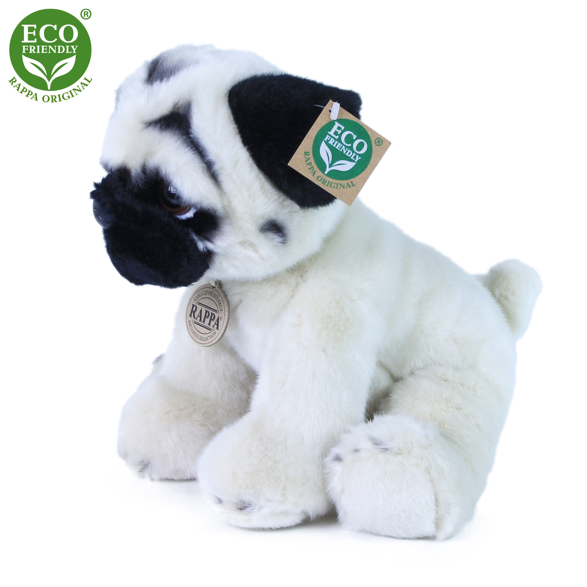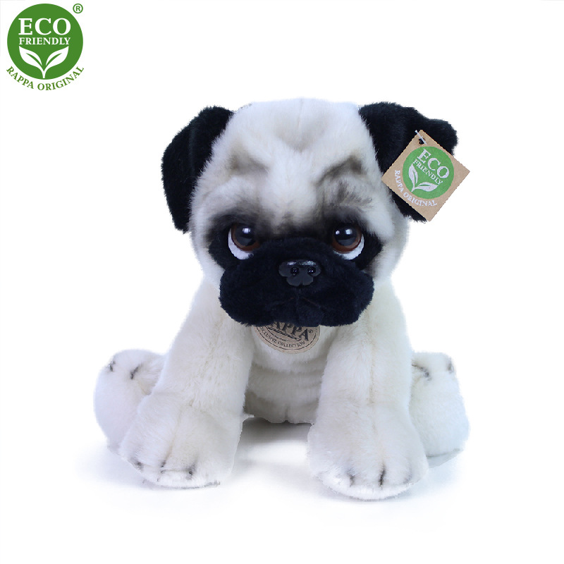 Plyšový pes mops je ručně ušitý z vysoce kvalitní, jemné plyše, a díky tomu vypadá jako živý. Tento pes je velký 30 cm. Pro svou roztomilost se stává vítaným společníkem nejen do každého dětského pokojíčku. Je součástí exkluzivní kolekce plyšových hraček RAPPA. Rozhodli jsme se jít zelenou cestou co nejméně zatěžující životní prostředí - cestou ECO-FRIENDLY. Co to vlastně ECO-FRIENDLY znamená? Výplň plyšové hračky je vyrobena z recyklovaných PET lahví. Tento materiál je zcela bezpečný, na omak nerozeznatelný od standardní výplně a plně atestovaný pro bezpečnost i těch nejmenších.