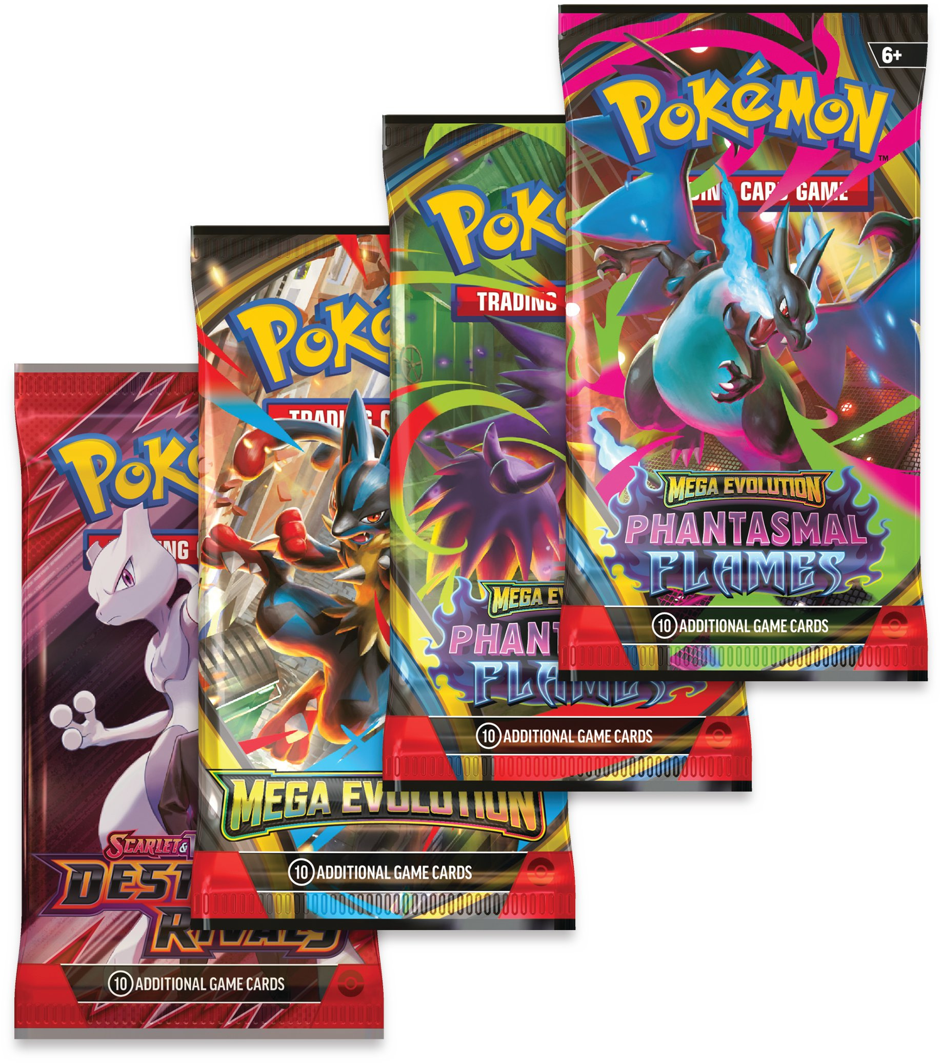 Obsah balení:• 1 foilová promo karta Mega Charizard X ex nebo Mega Charizard Y ex• 4 boostery Pokémon TCG• přístupový kód pro Pokémon TCG Live