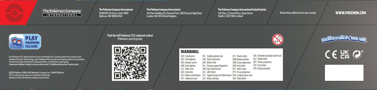 Obsah balení: • 18 boosterů Pokémon TCG • 1 foilová promo karta Mega Charizard X ex • 1 foilová promo karta Oricorio ex • 65 obalů na karty - Mega Charizard X ex • herní podložka - Mega Charizard X ex • krabička na karty - Mega Charizard X ex • 1 mince - Mega Charizard X ex • 6 kostek k označení kondice • přístupový kód pro Pokémon TCG Live