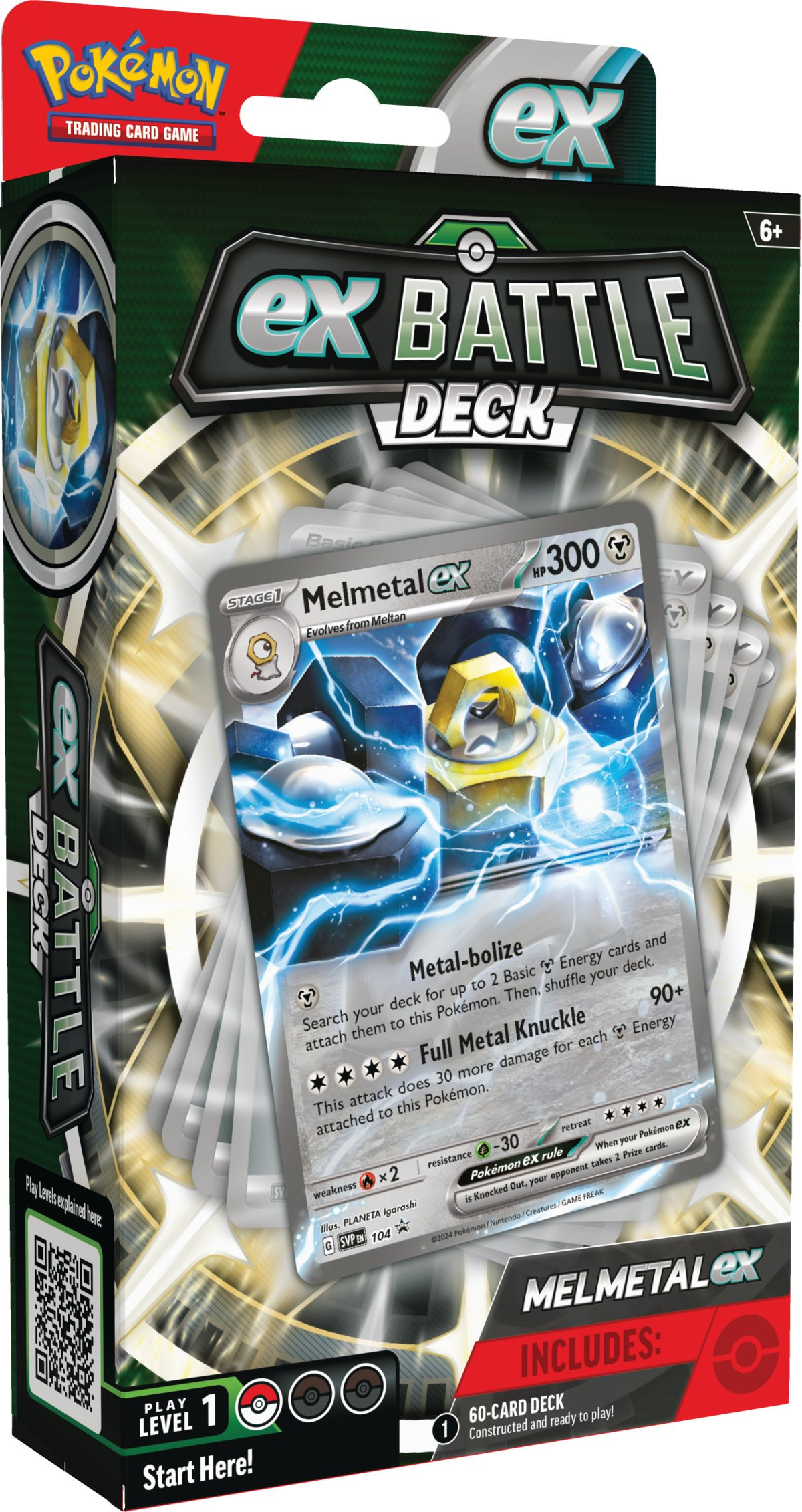 Obsah balení: • 1 balíček o 60 kartách určený ihned k hraní • 3 referenční karty • 1 EN pravidla • 1 podložka pro jednoho hráče • 1 sada žetonů kondice • 1 velká metalická mince • 1 krabička • 1 EN průvodce strategie • 1 přístupový kód pro Pokémon TCG Live