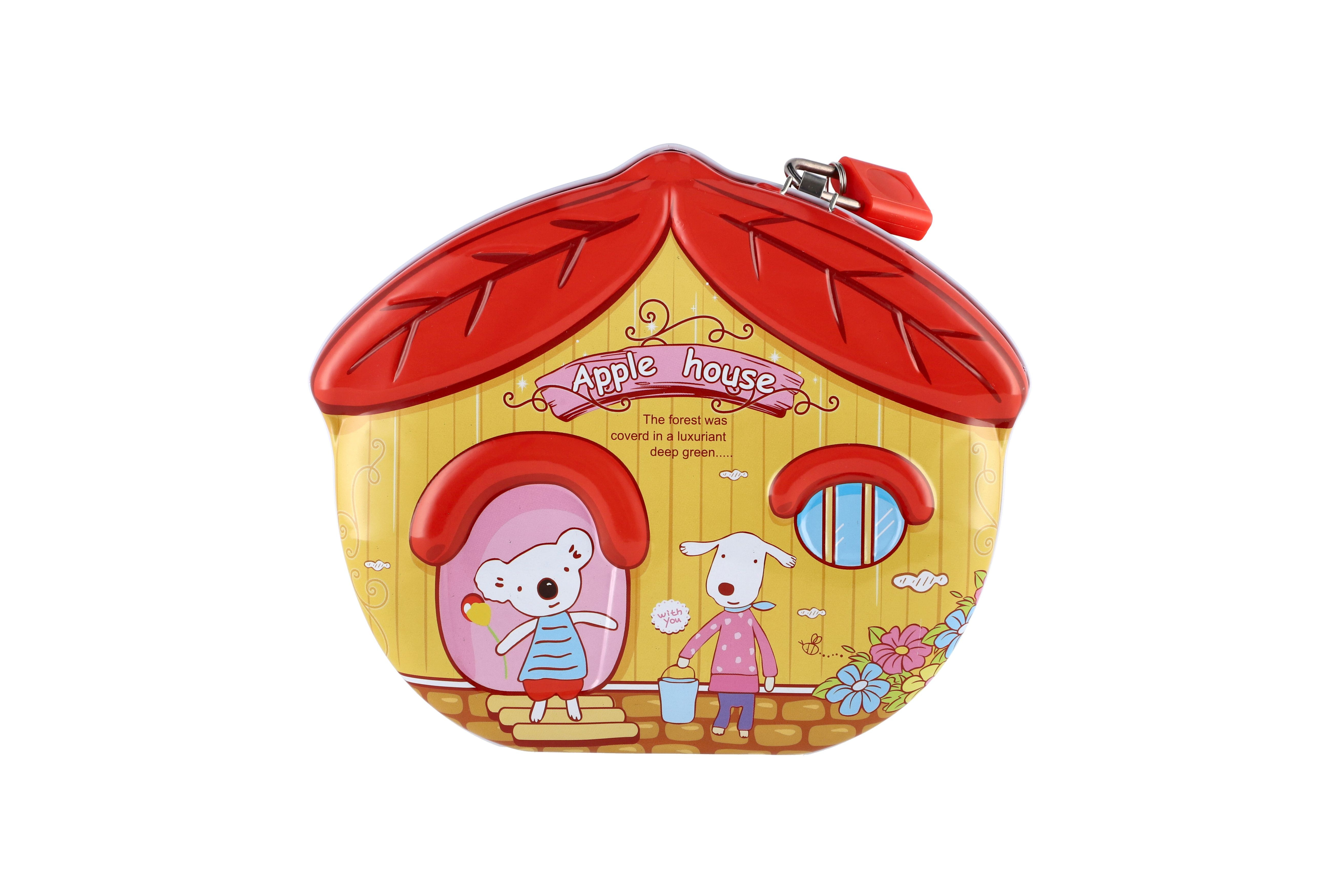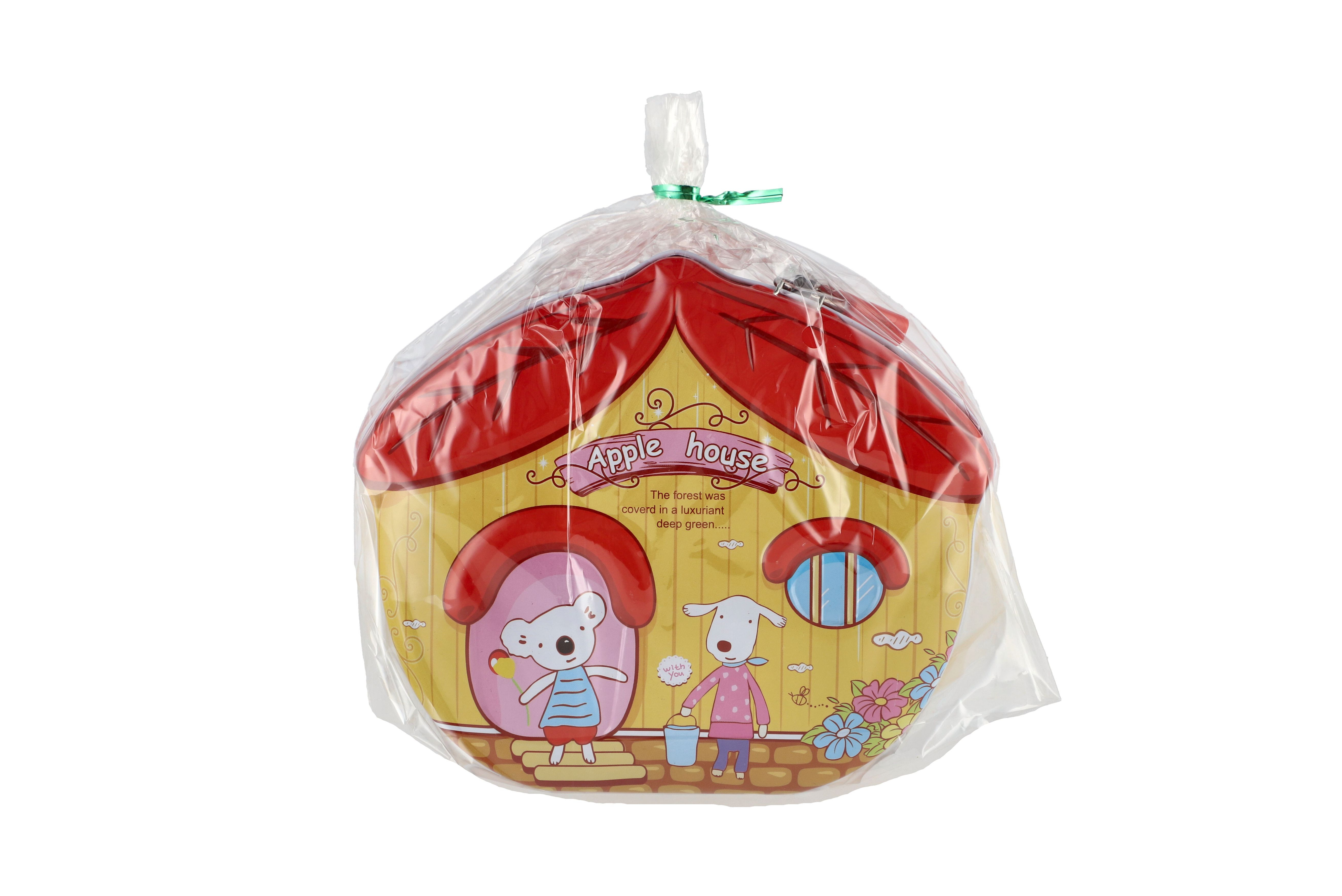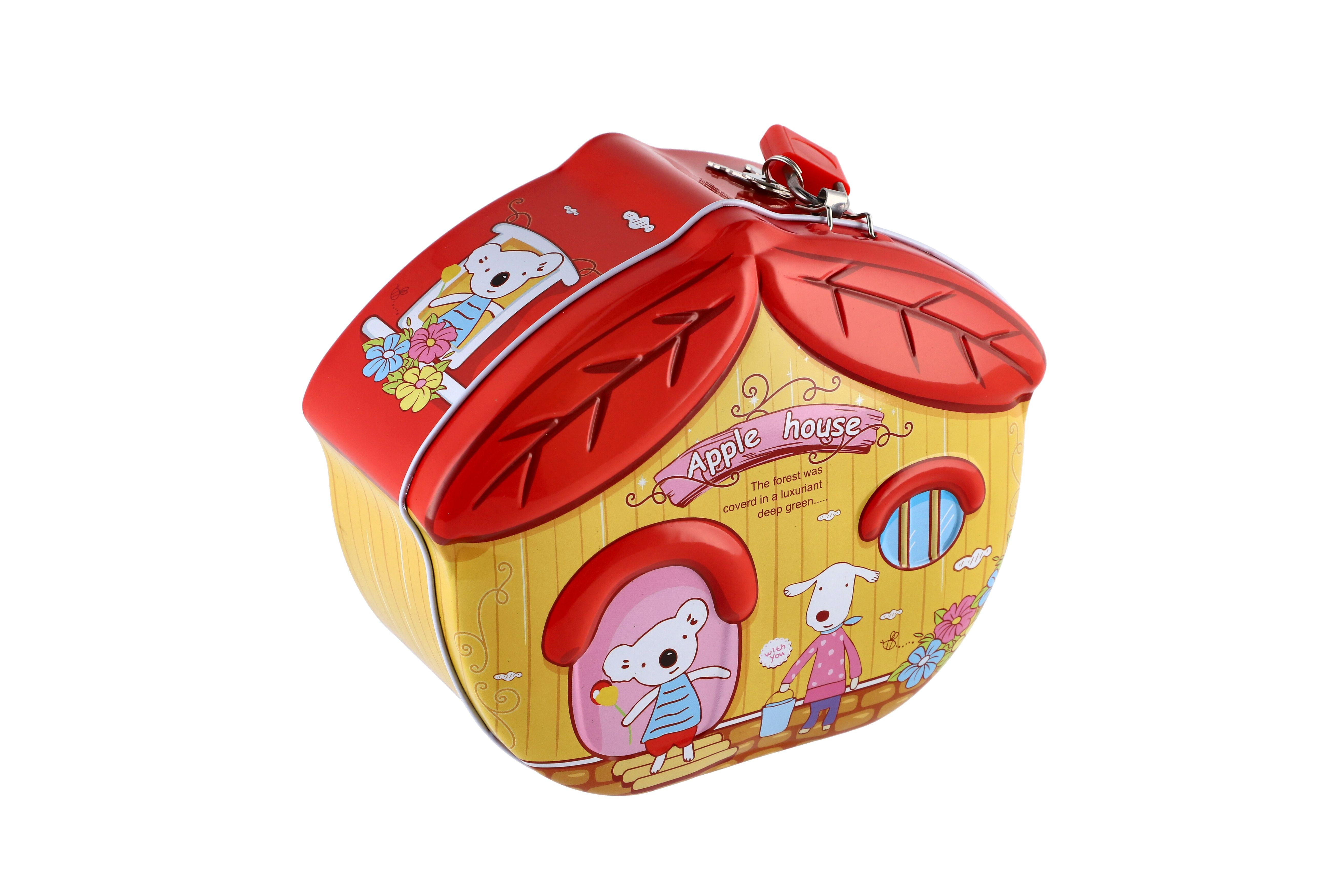 Teddies Pokladnička chaloupka plechová se zámkem 10x10cm 4 barvy v sáčku