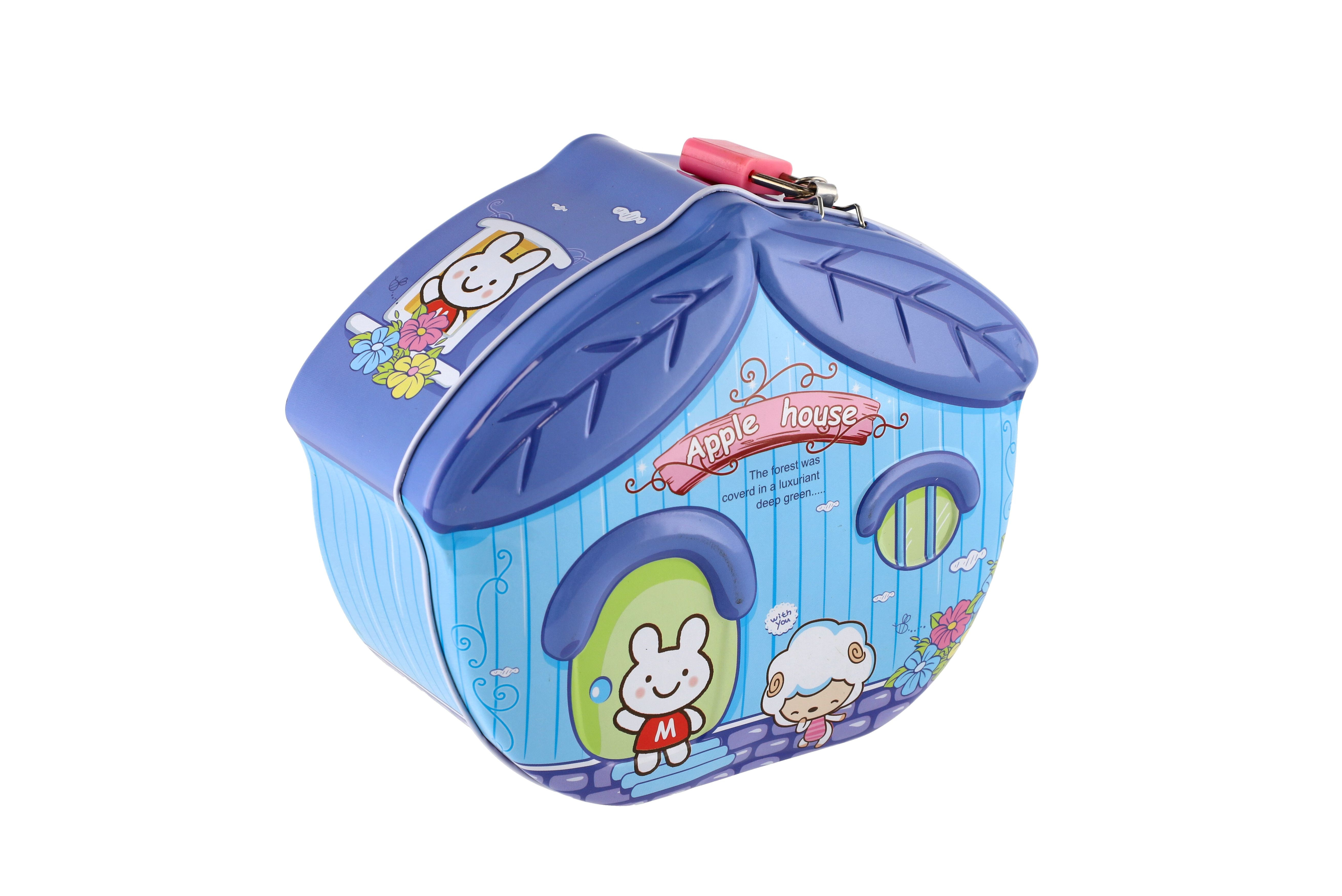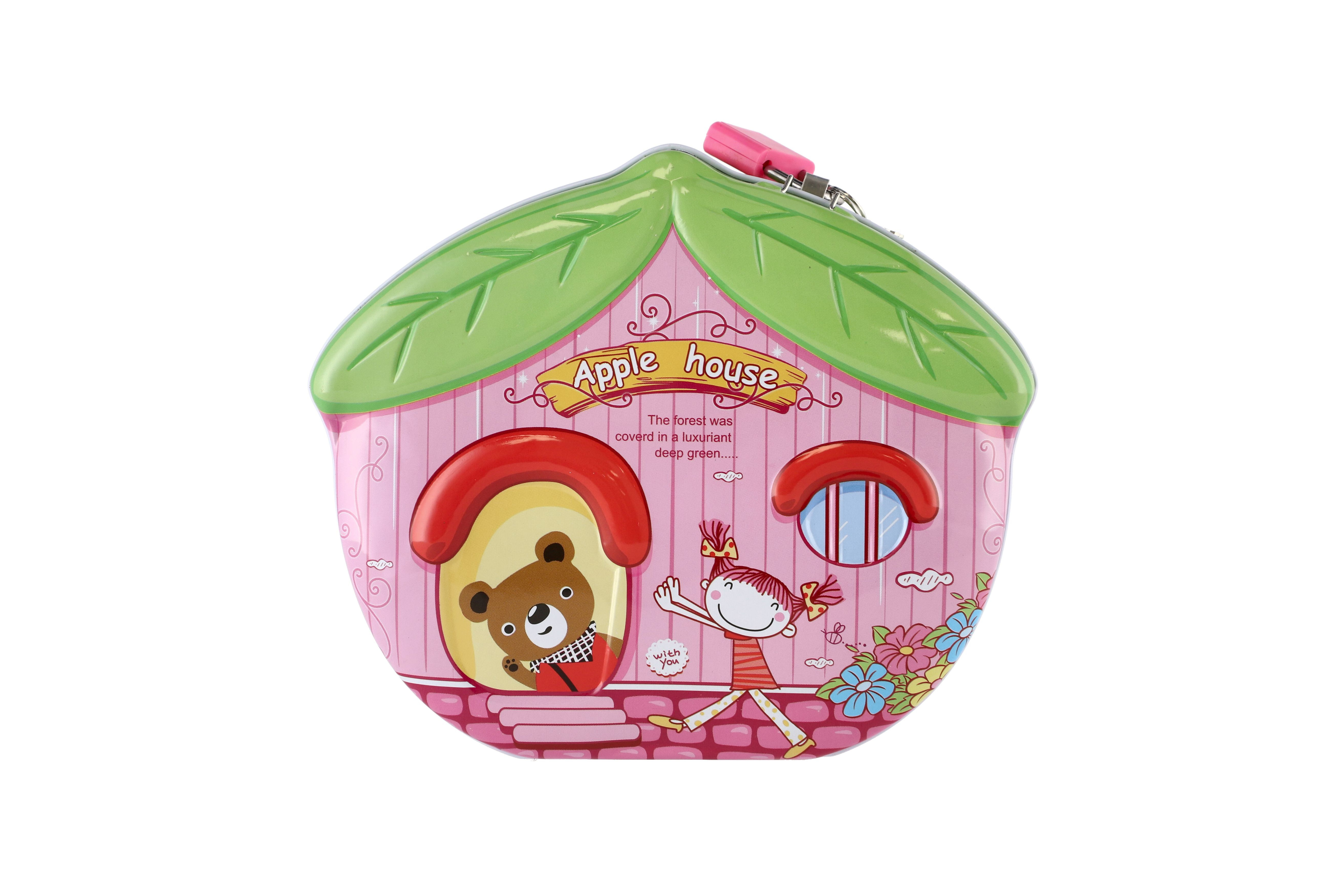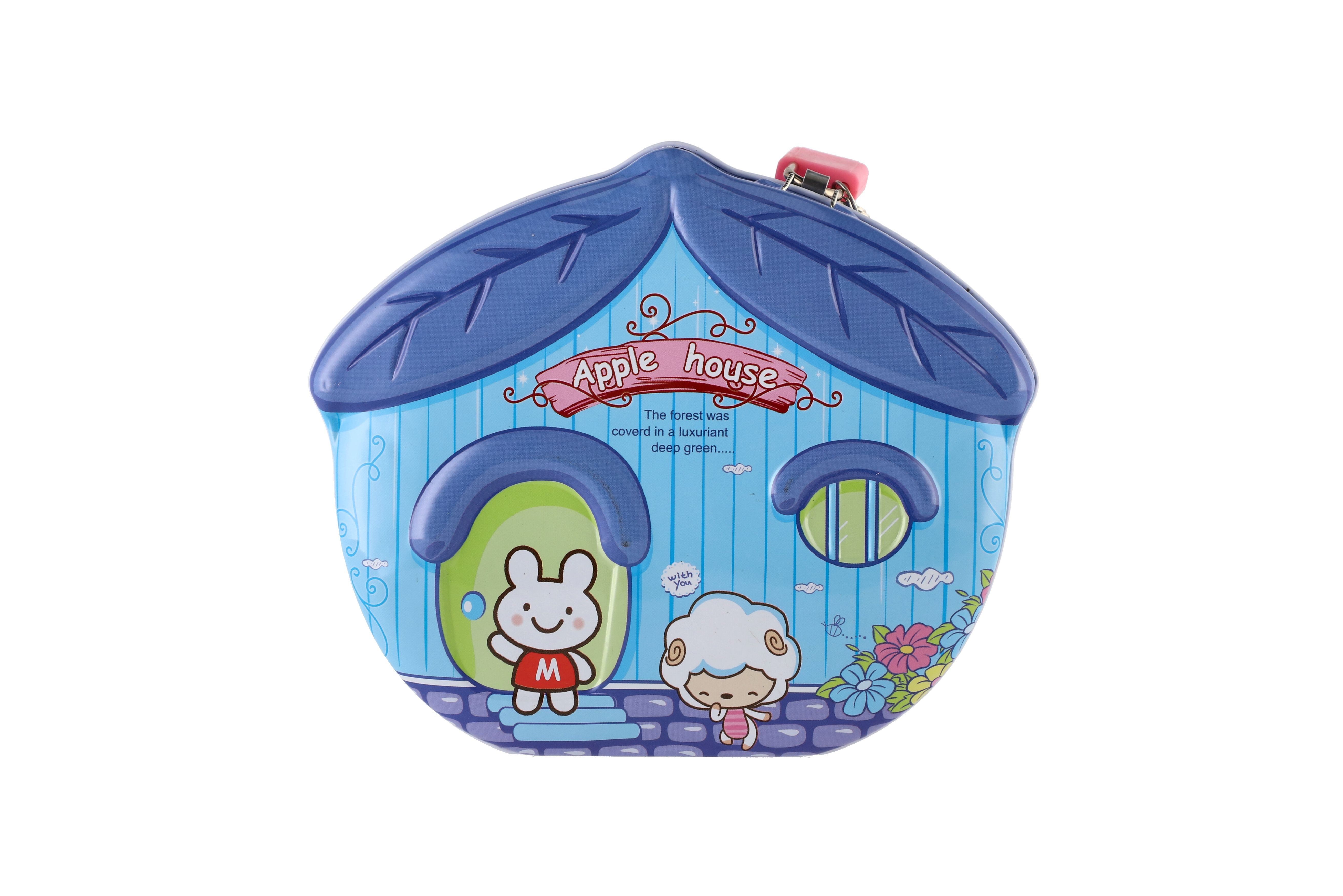 Teddies Pokladnička domeček plechová se zámkem 16x8cm 3 barvy v sáčku
