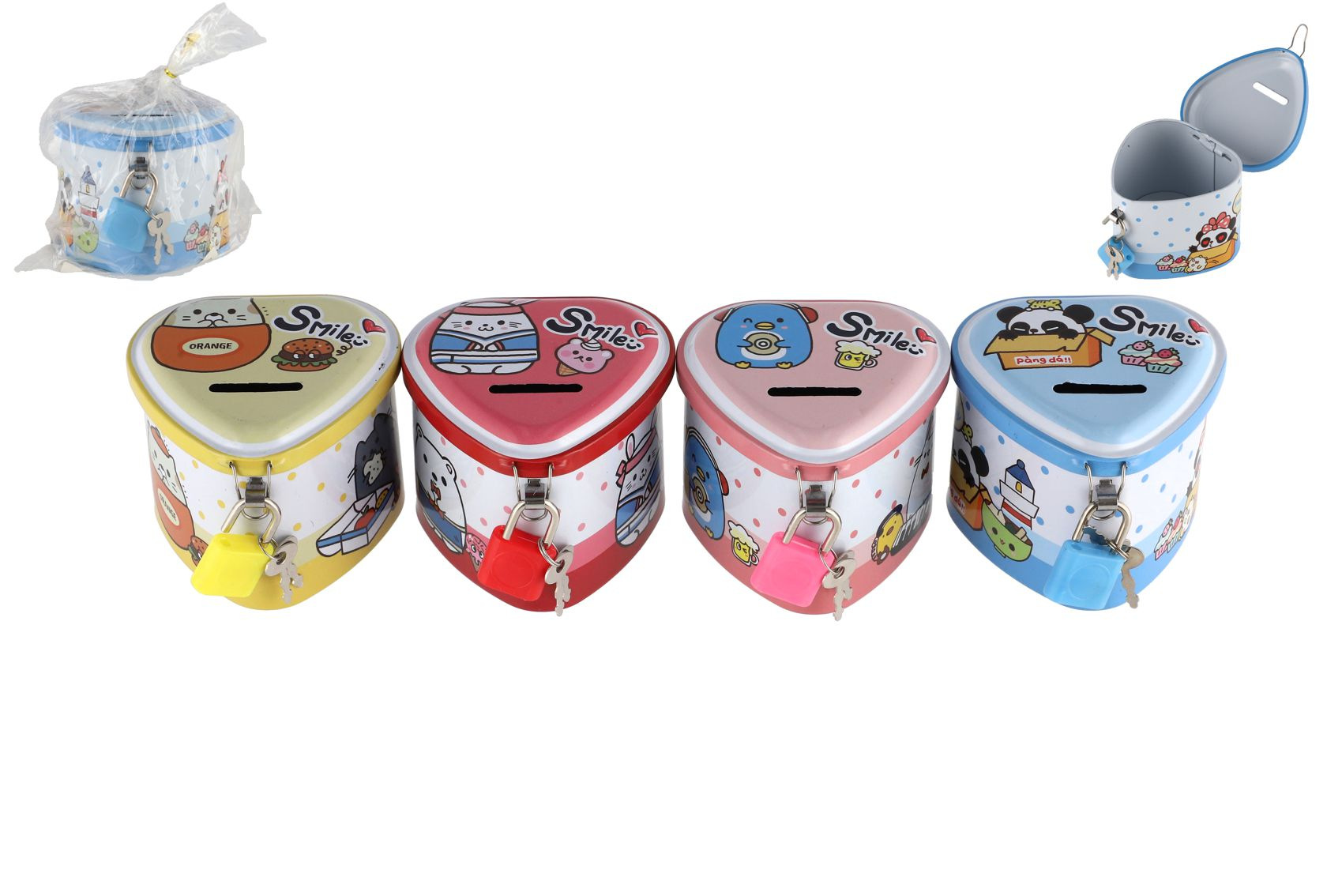 Popis Teddies Pokladnička plechová srdce se zámkem 8x7cm 4 barvy