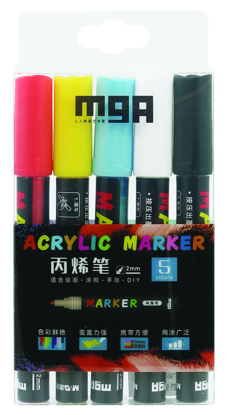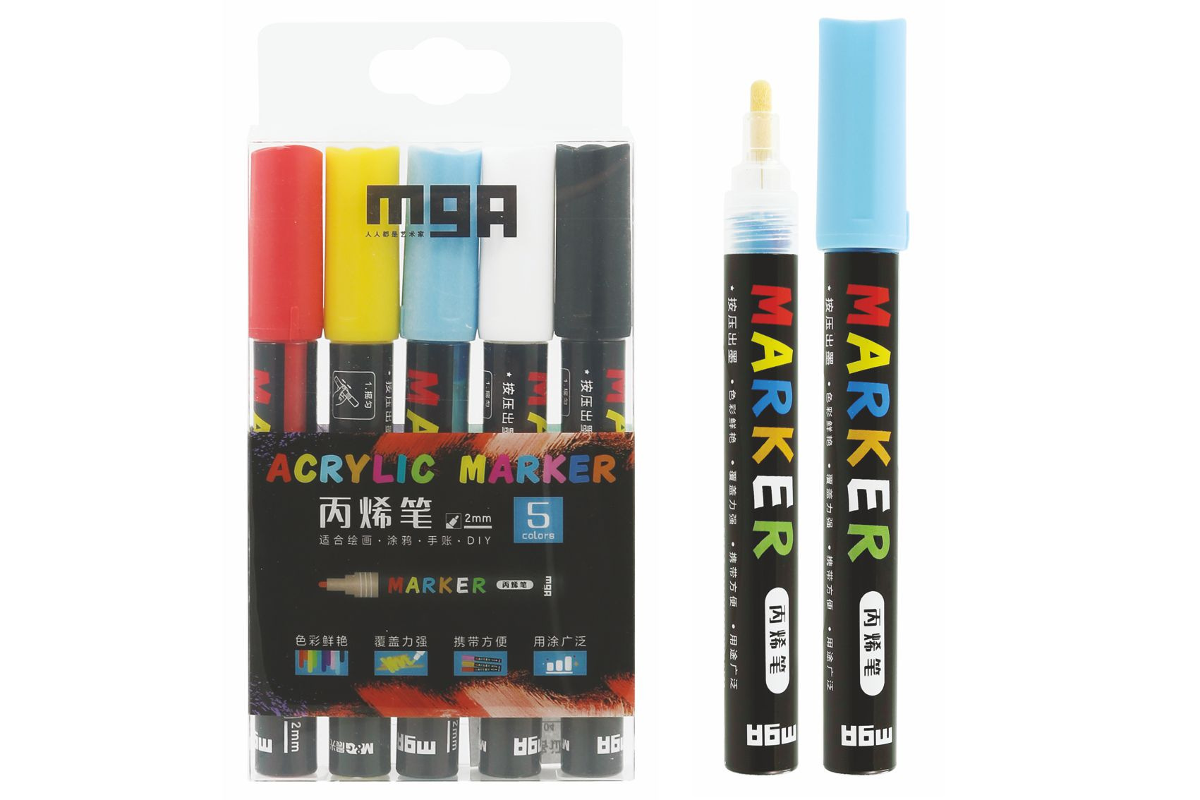 Popis Akrylový popisovač 5ks i na keramiku,sklo,kameny v krabičce 9x18x2cm
