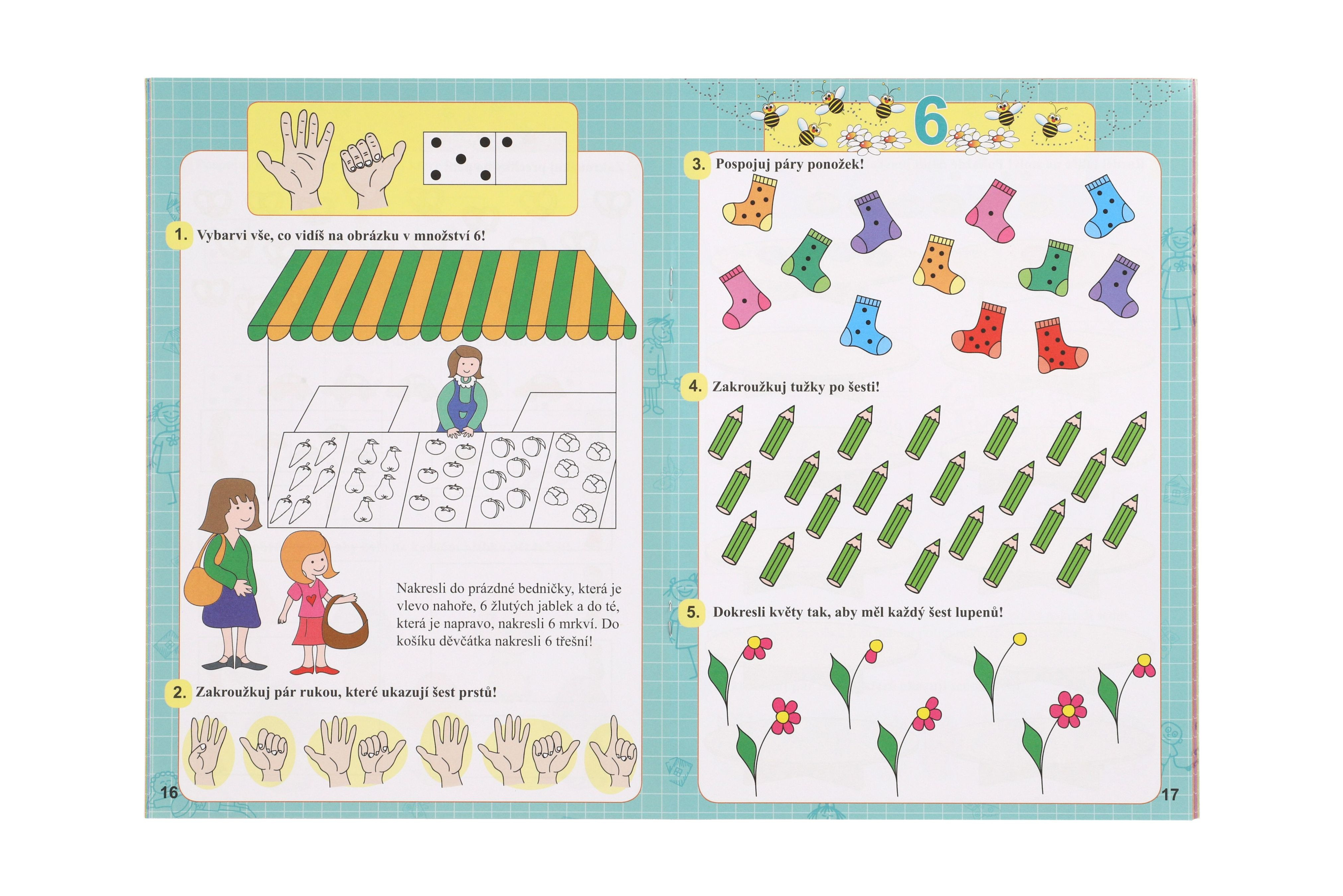 Hravé úkoly zavedou 5 až 6leté školkaře do světa čísel, množství a tvarů. Je užitečnou pomůckou při vytváření dovedností potřebných při počítání. Pomáhá rozvíjet schopnost pozorování, logiku, orientaci v prostoru a jemnou motoriku rukou.