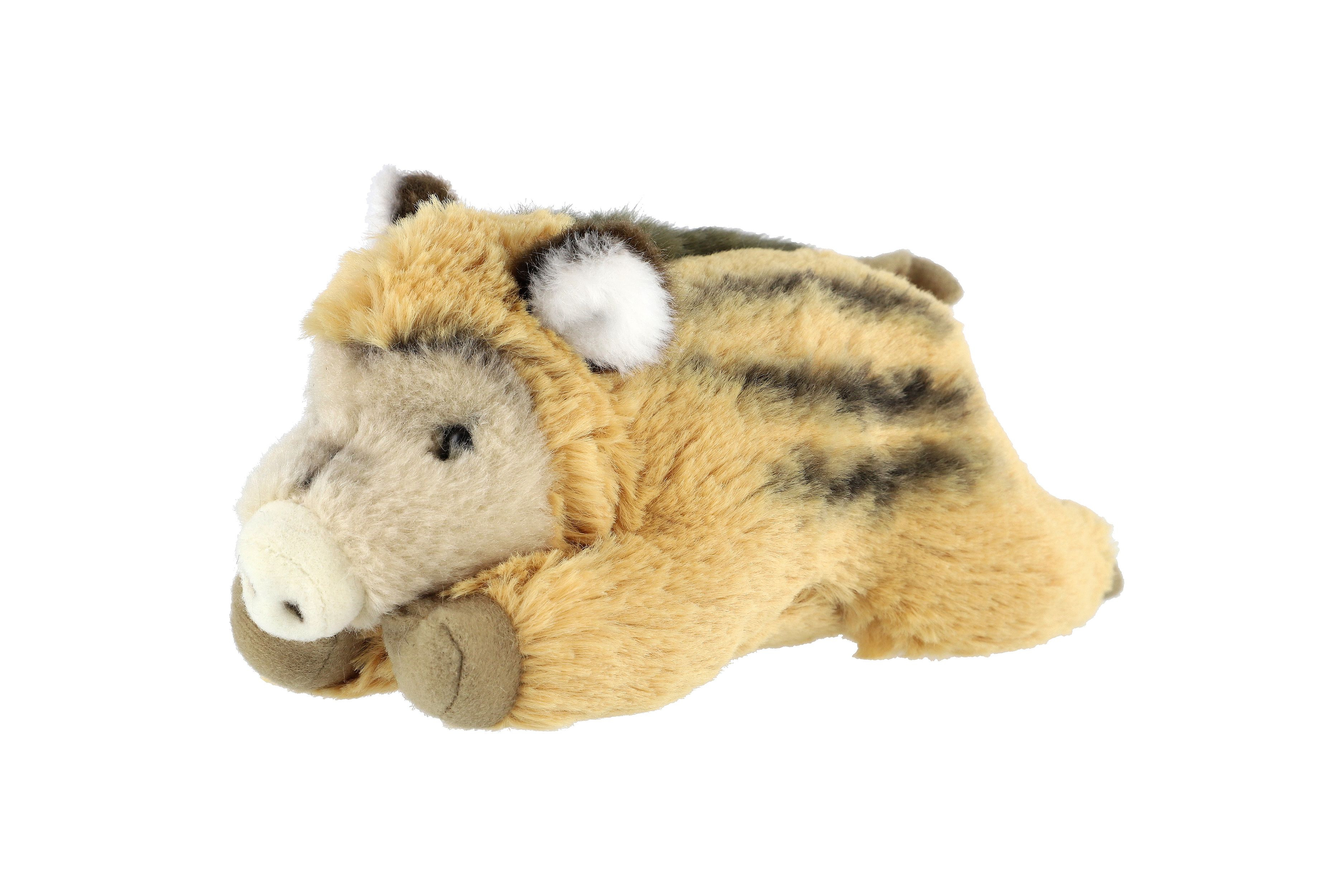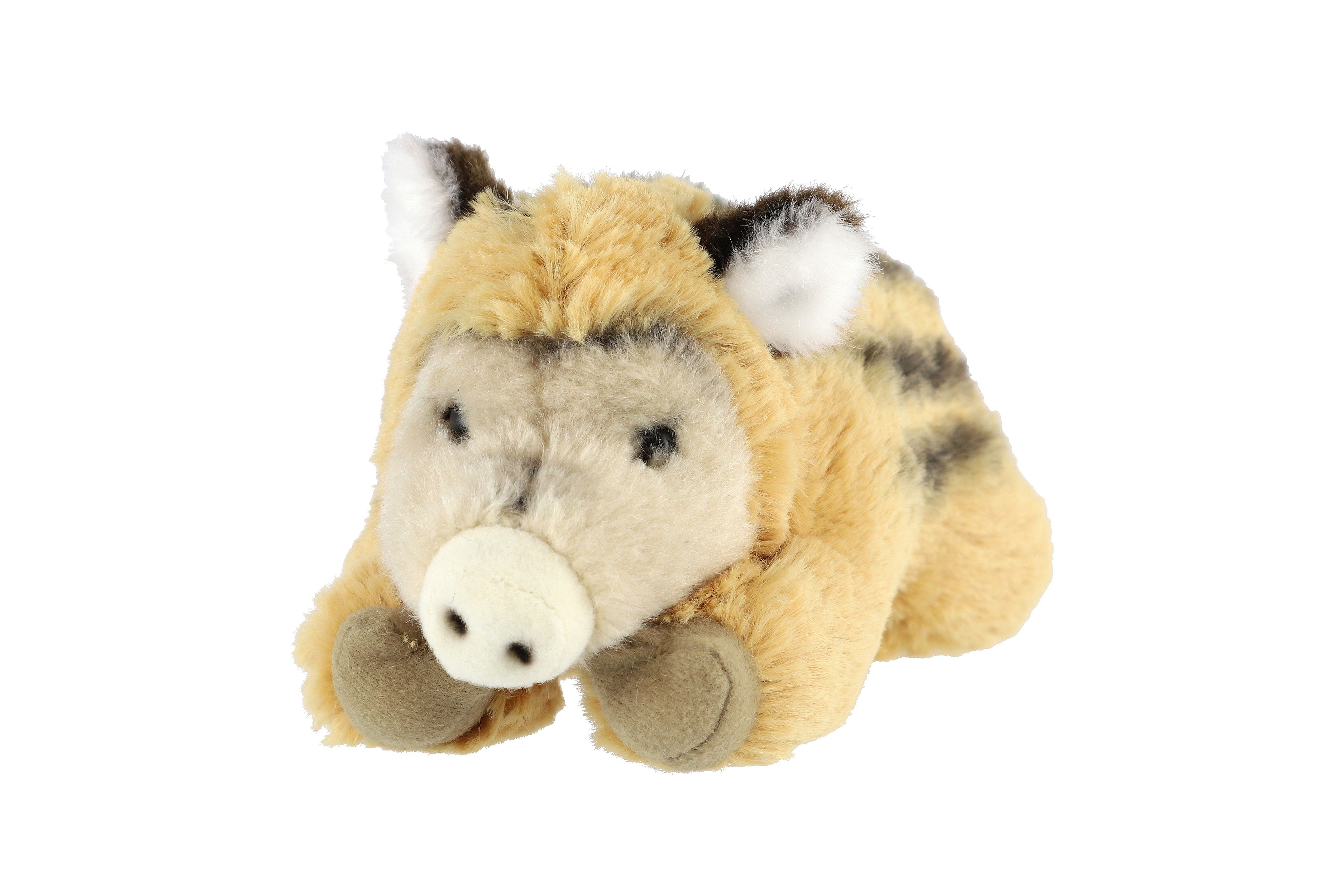 Roztomilé ležící sele divokého prasete potěší každého milovníka zvířátek. Heboučké, měkké a věrně zpracované s typickým pruhováním. Skvělé jako mazlivý kamarád pro nejmenší nebo jako doplněk k větším lesním zvířátkům. Velikost: 9 × 18 cm Vhodné pro děti od 0 měsíců