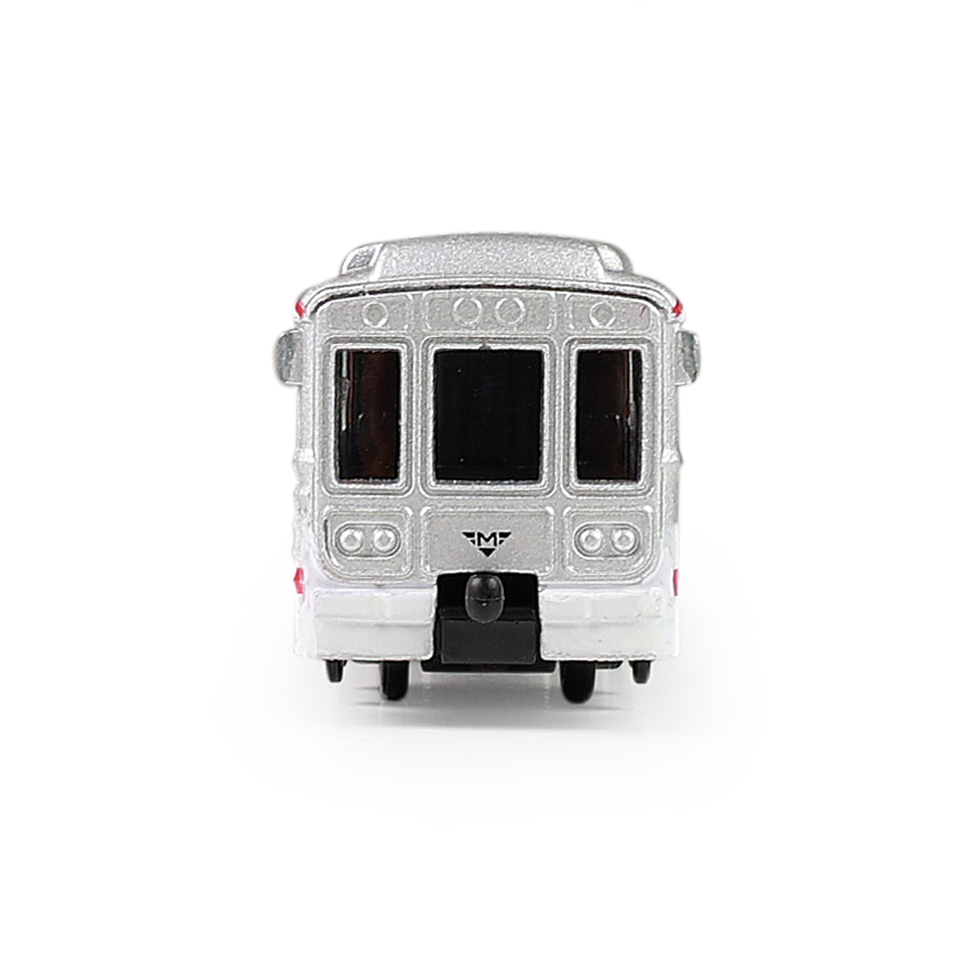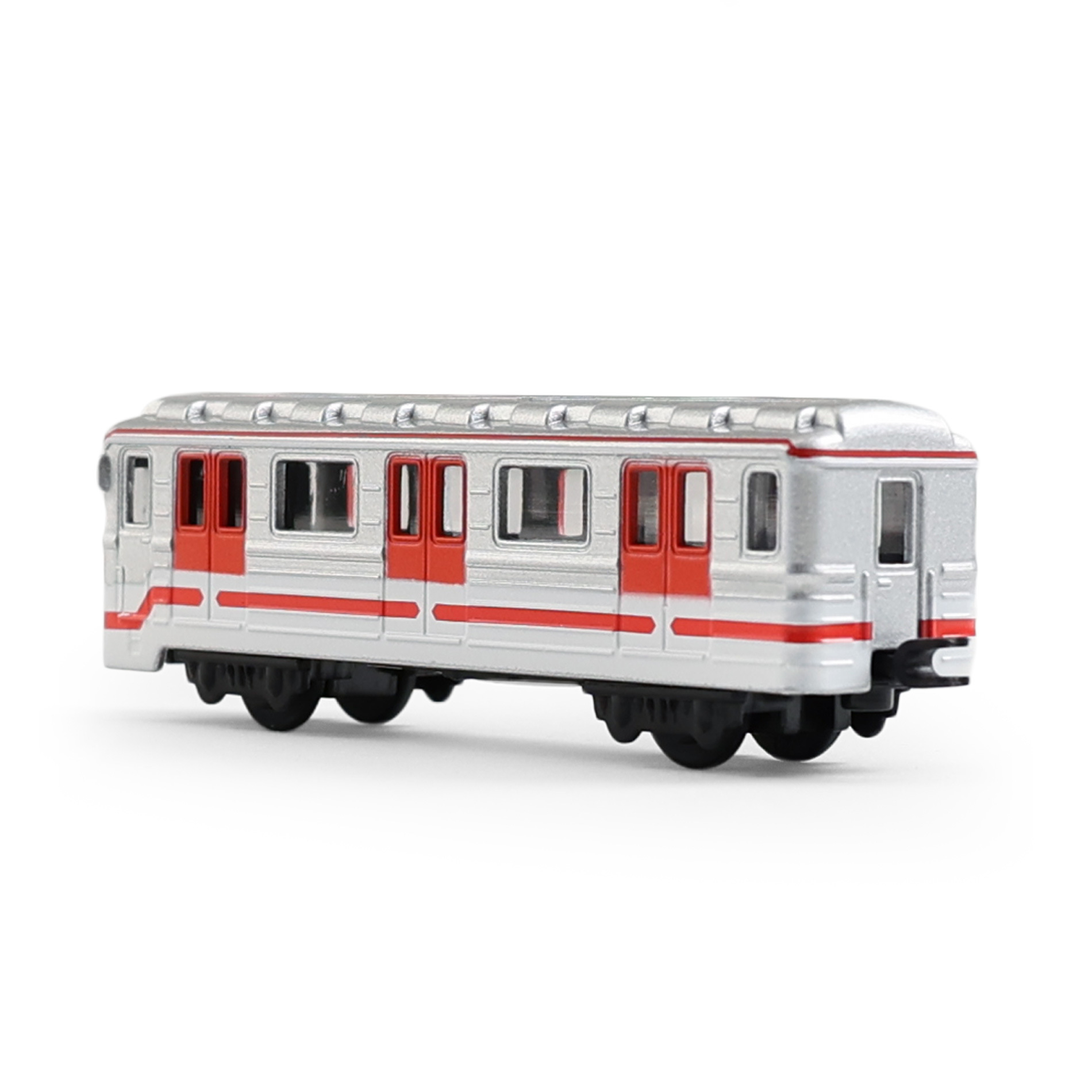 Originální hračka vytvořená ve spolupráci s hlavním městem Praha a Dopravním podnikem hlavního města Prahy. Délka metra je 8,5 cm. Tento jedinečný kousek se určitě stane oblíbenou hračkou všech malých nadšenců městské hromadné dopravy nejen v Praze. Navíc lze jednotlivé soupravy jednoduše zapojit za sebou. Jezdí na volný chod. Metro má rozchod kol cca 1cm.