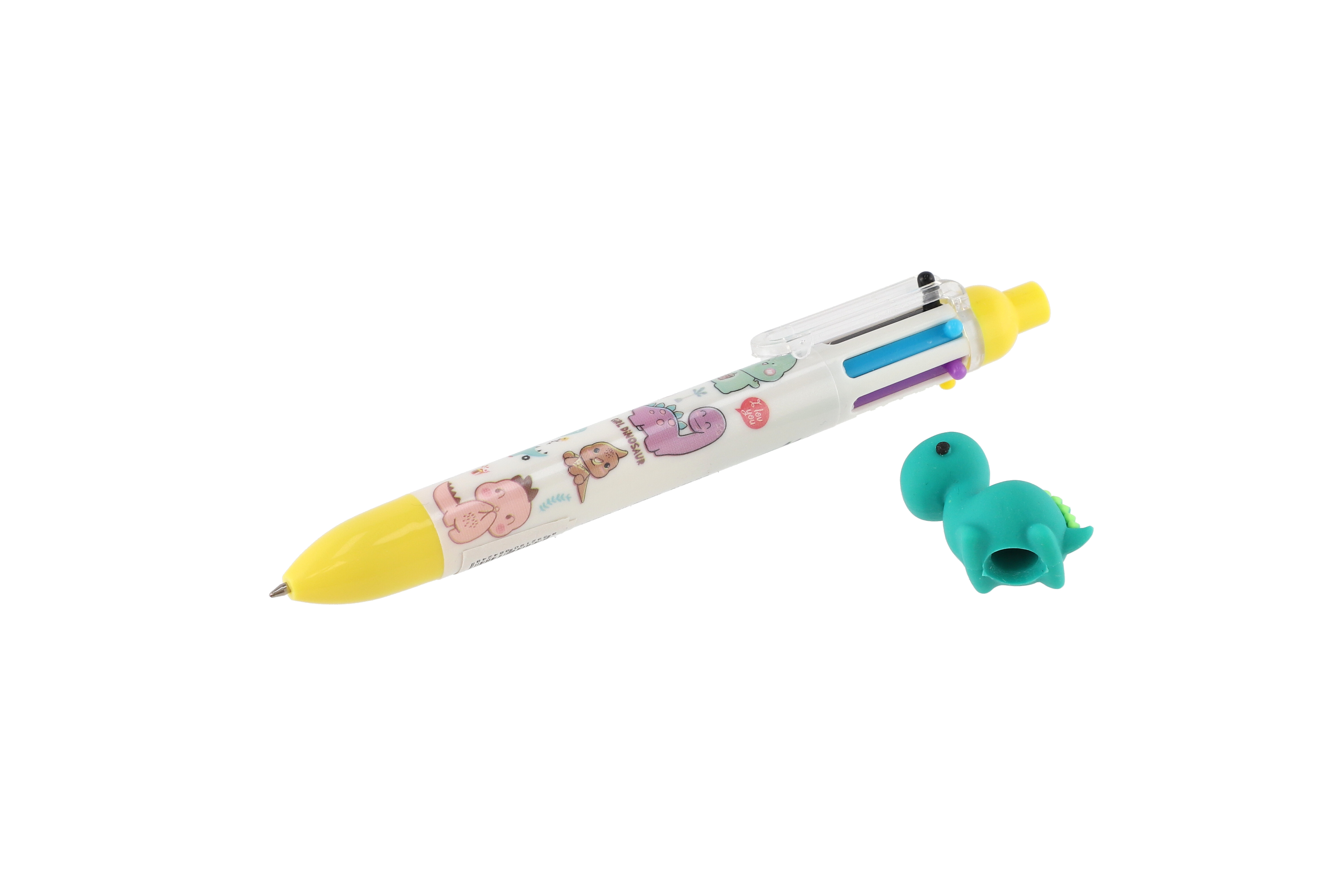 6ti barevná propiska s motivem dinosaura je skvělým pomocníkem nejen pro školáky. Změň si kdykoli barvu náplně přepnutím barvy jiné. Velikost pera je 17 cm. Není hračka.