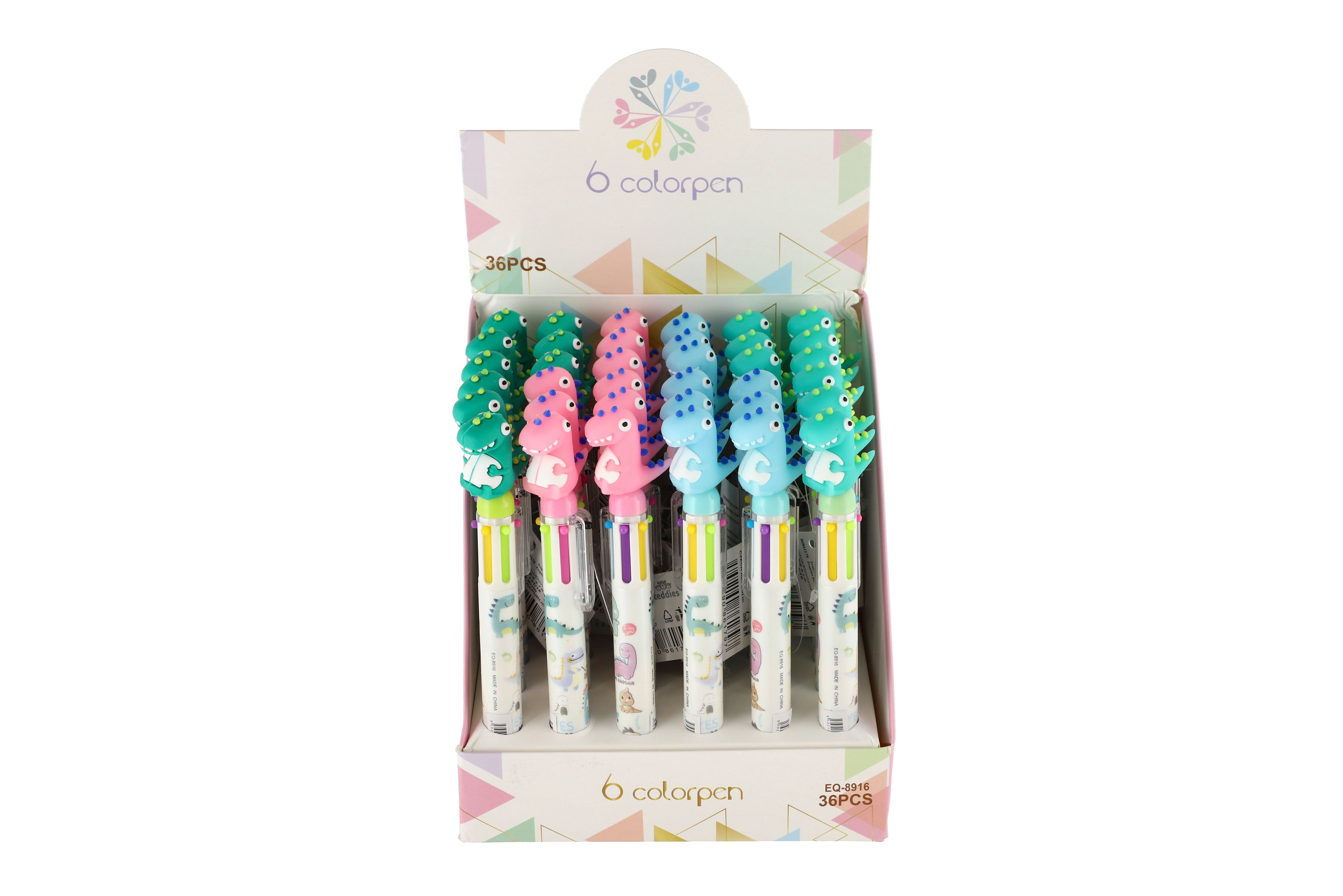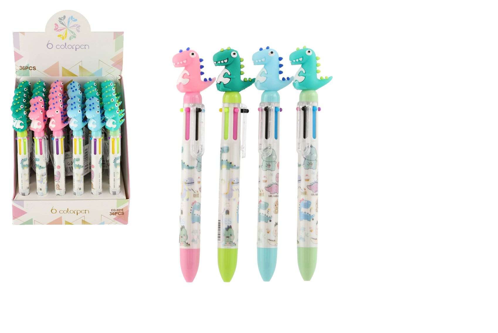Nápaditá propiska s motivem dinosaura prostě baví! Uvnitř se ukrývá 6 barevných tuh, které lze libovolně měnit. Děti si ji oblíbí jak do školy, tak na doma. Změň barvu stlačením černé tuhy. Rozměr propisky: 17 cm