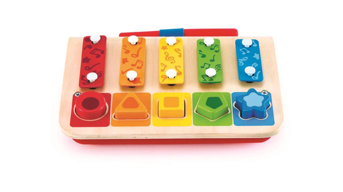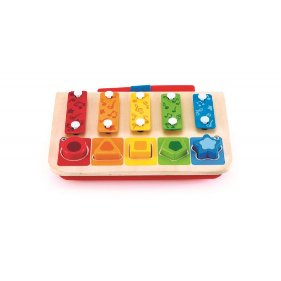 Xylofon patří mezi bicí nástroje. Jeho kovové plátky jsou usazeny na filcových kroužcích, které regulují ostrost zvuku. Dřevěný rám i paličky propůjčují zvuku hloubku a sametovový tón. Věk: 3+ | Rozměr: 25,5 cm