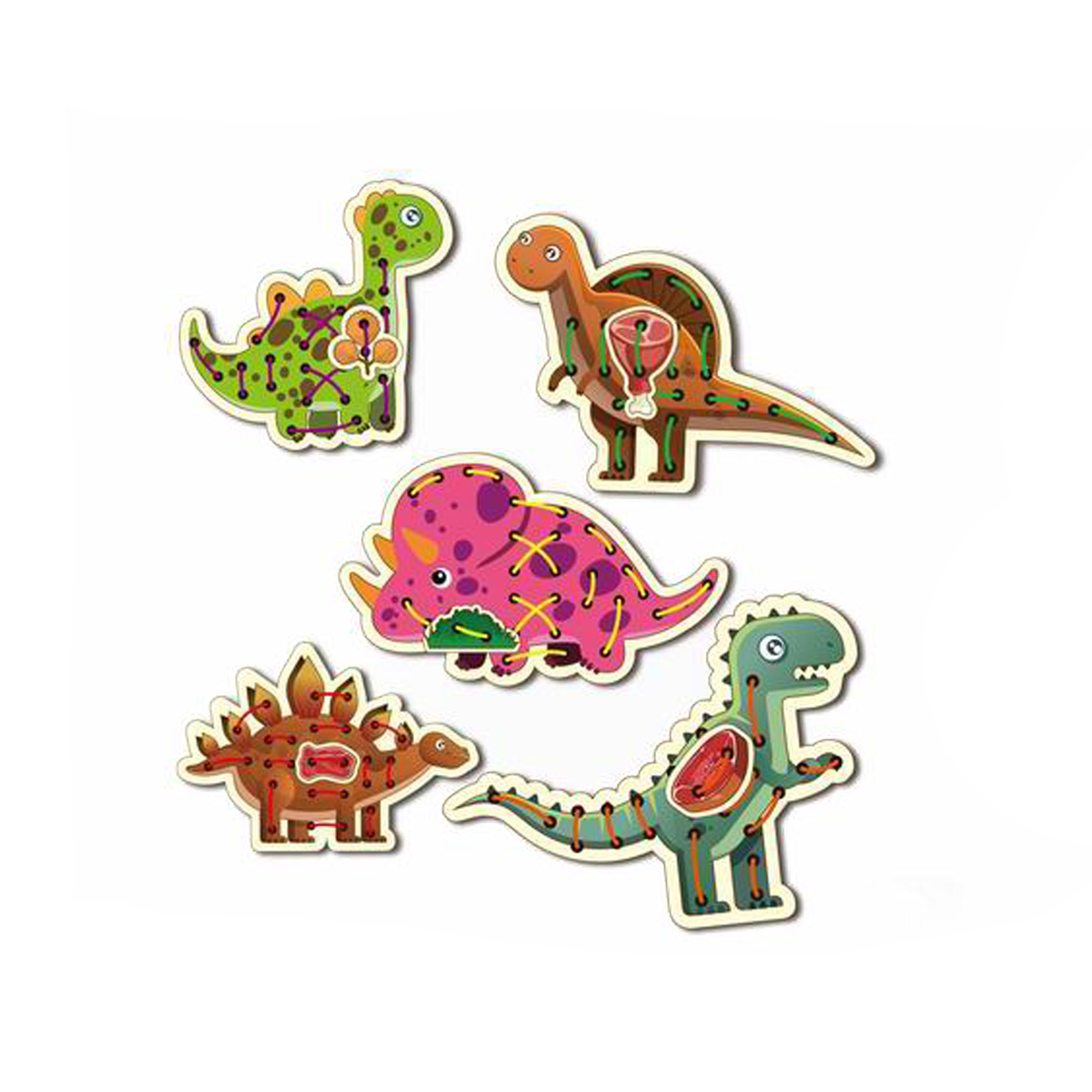 Dinosauří provlékačka nabízí spoustu kreativní zábavy. S pomocí přiložených různobarevných tkaniček si mohou děti provlékat dinosaury. Balení tvoří 5 provlékacích obrázků dinosaurů a 5 barevných tkaniček. S těmito zábavnými provlékačkami si určitě báječně vyhraješ! Rozvíjí myšlení a kreativitu.
