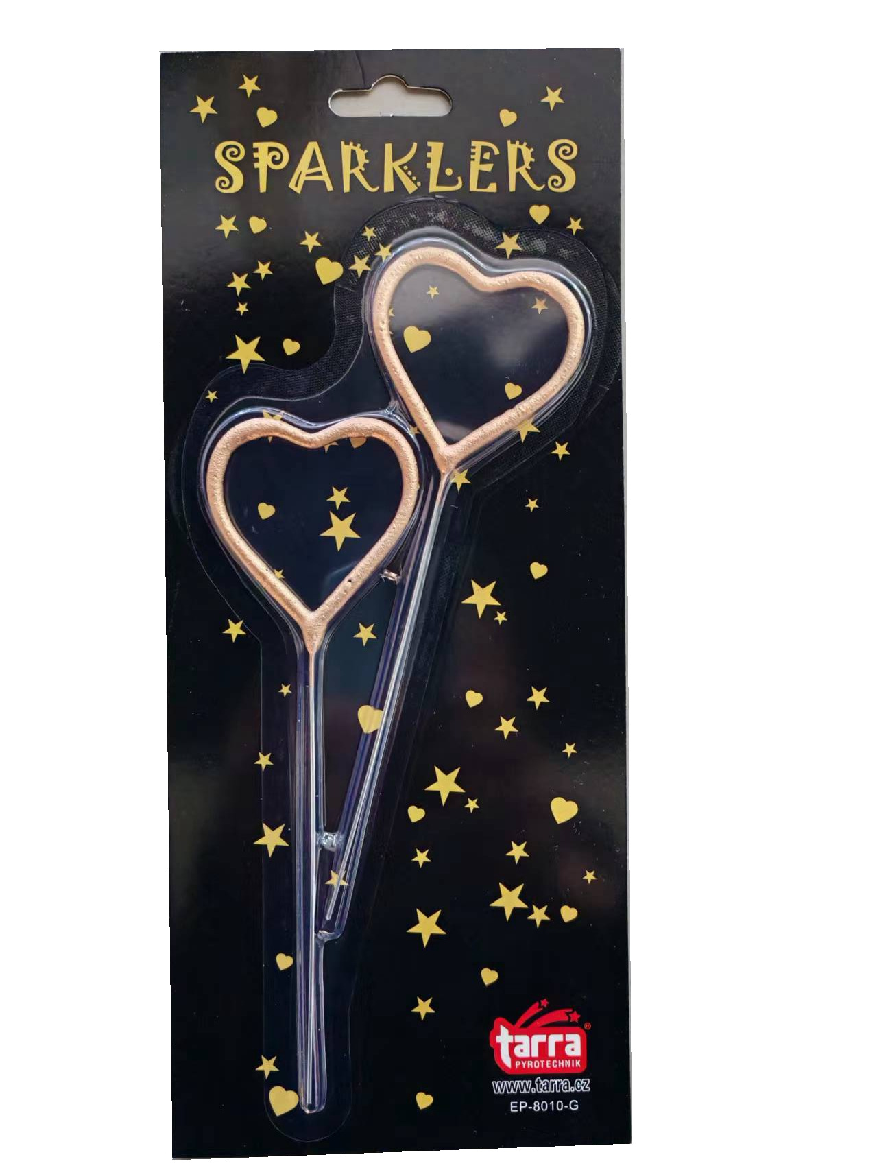 Popis Prskavky ve tvaru srdce zlaté 2 ks 16,5cm na kartě