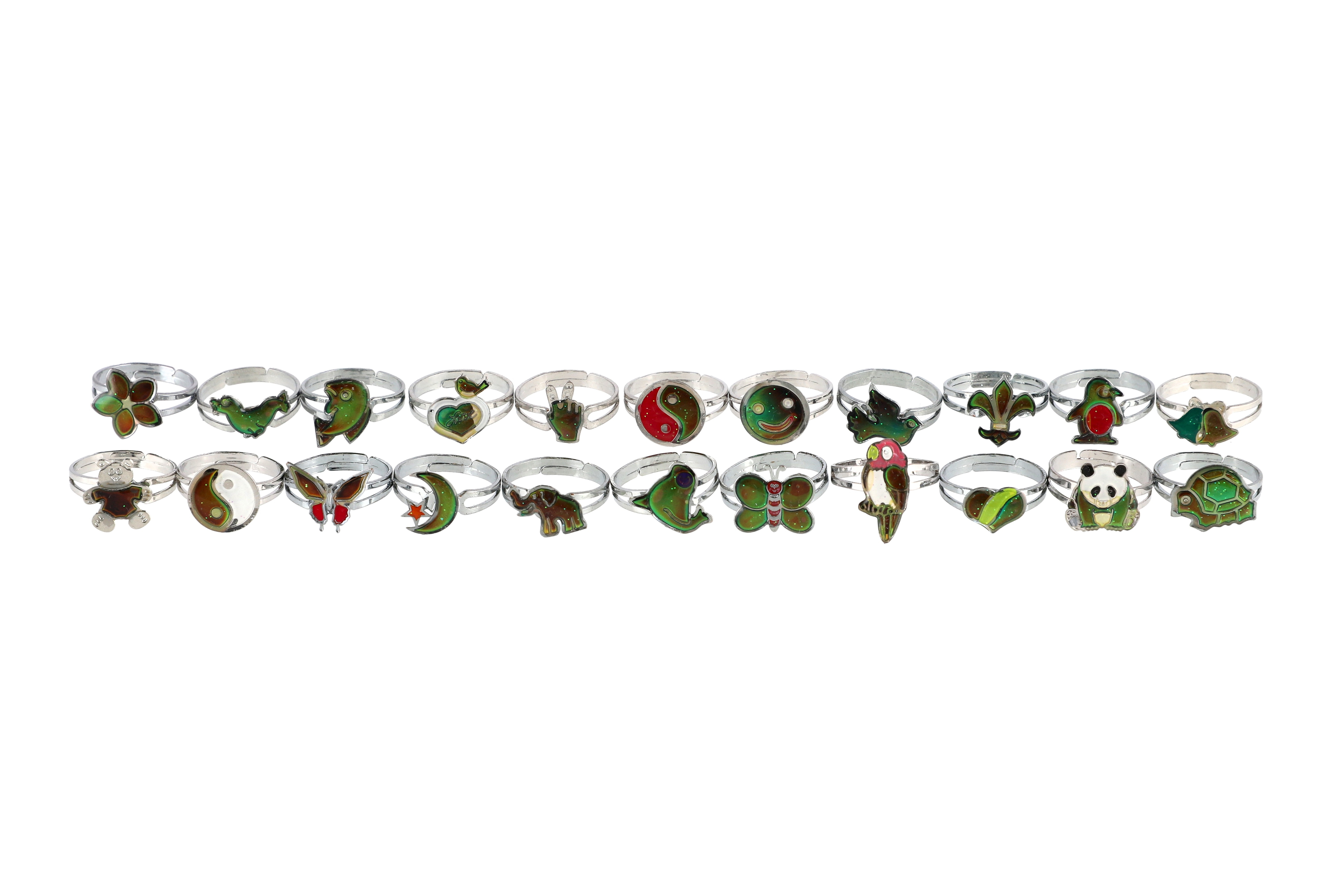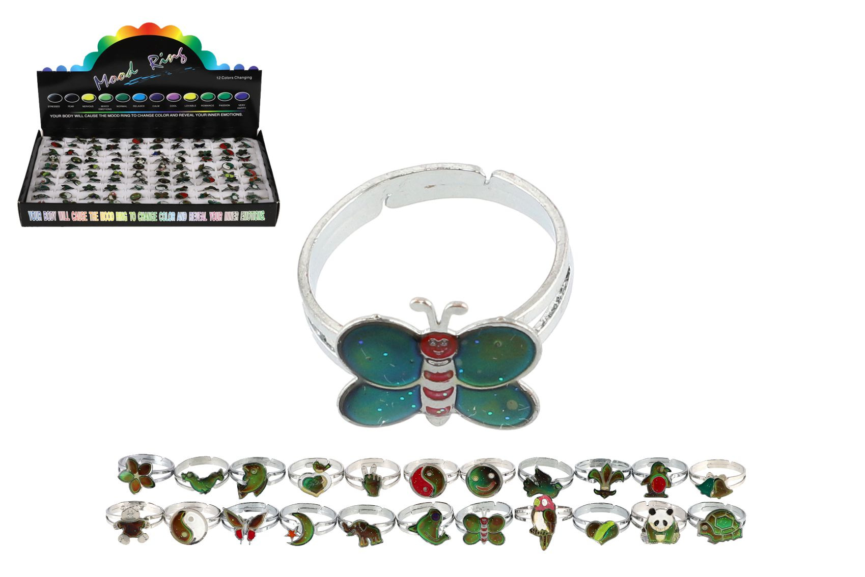 Nastavitelný kovový prstýnek, který mění barvu podle teploty těla. Díky speciálnímu termoaktivnímu povrchu prstýnek reaguje na změny teploty a mění odstíny v barevném spektru. Zábavný a poutavý doplněk pro děti, který spojuje hravost s jednoduchým fyzikálním jevem.