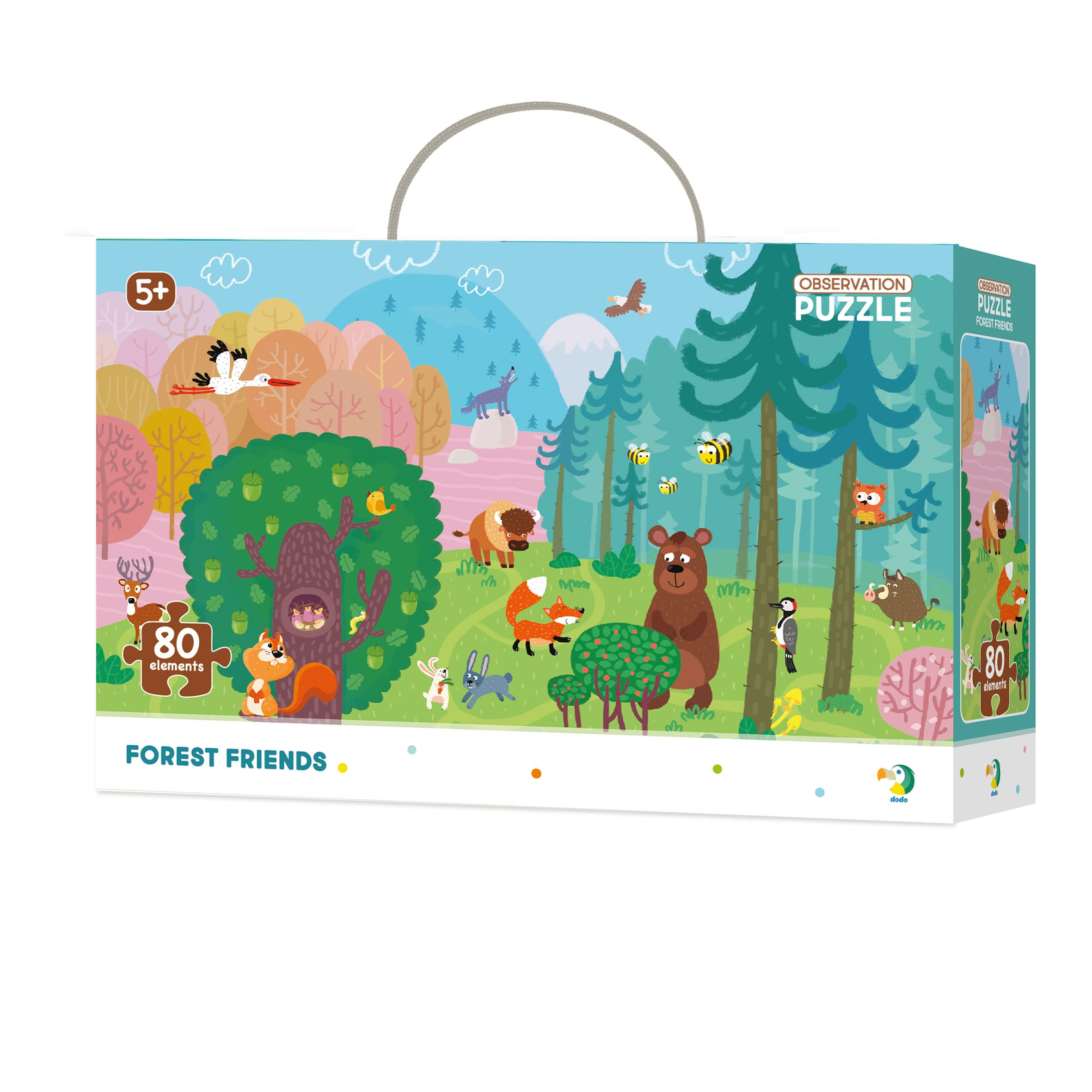 Vzdělávací puzzle, které obsahují barevné obrázky různých zvířátek, které žijí v lese.Po dokončení puzzlí mohou děti hrát hru „Najít a hledat“, kde určují umístění zvířat v lese. Puzzle navržené tak, aby bylo zábavné i vzdělávací, s barevnými vzory, které napomáhají rozvoji dítěte. Velikost složeného obrázku: 45 x 31 cm Rozměr balení: 25 x 16 x 6,5 cm Vhodné pro děti od 5 let