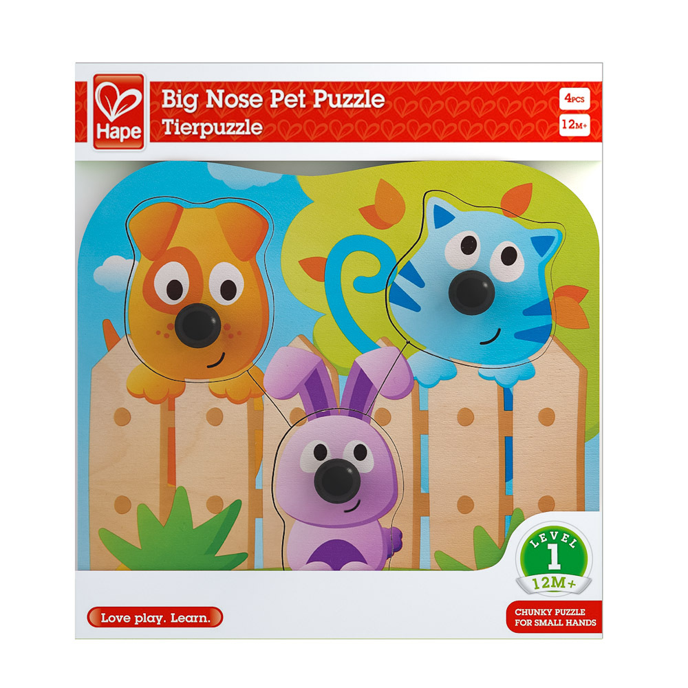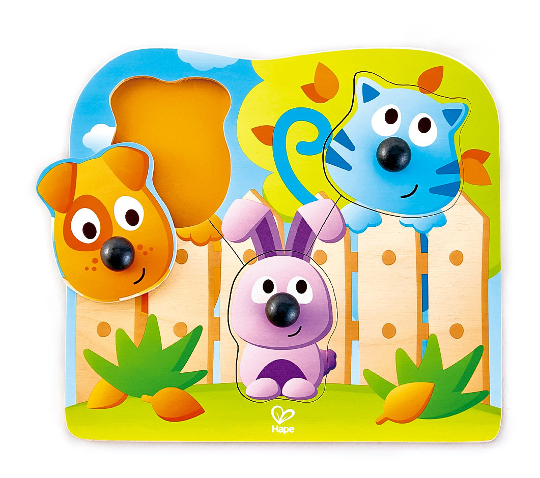 Puzzle s úchytkami s obrázky domácích zvířátek jsou v ideální velikosti pro malé ručičky. Sada obsahuje 4 dílky. Poutavé barevné provedení. Hračka pomáhá rozvíjet motorické dovednosti. Věk: 12m+. Rozměr: 22,5 x 20,8 x 3,5 cm.