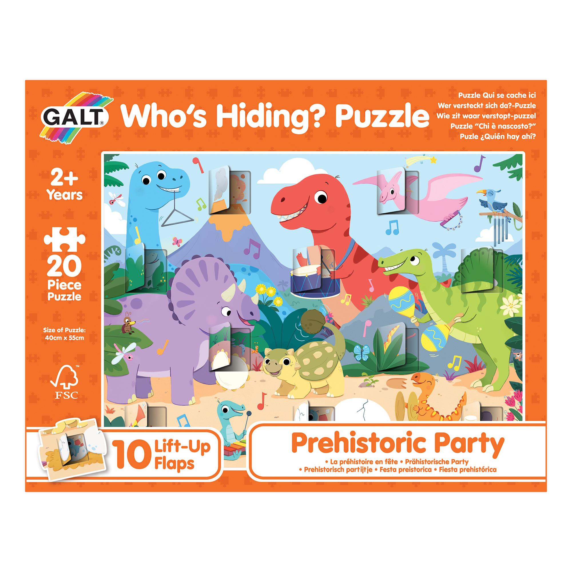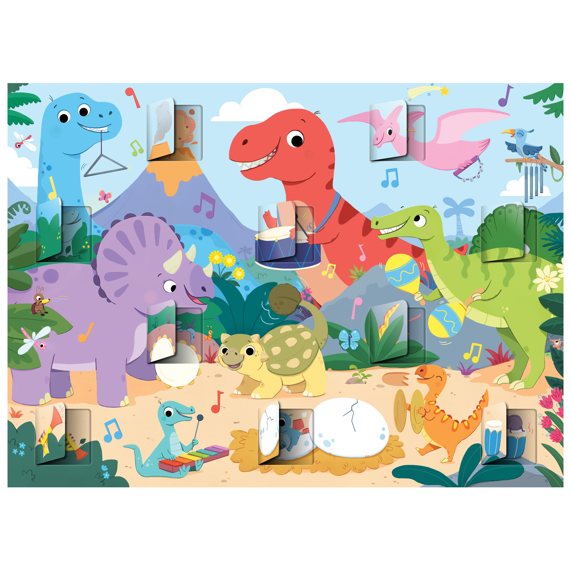 Tyto puzzle přináší zábavné scény s dinosaury s otevíracími okénky, které dětem umožňují prozkoumat, co se pod nimi skrývá.