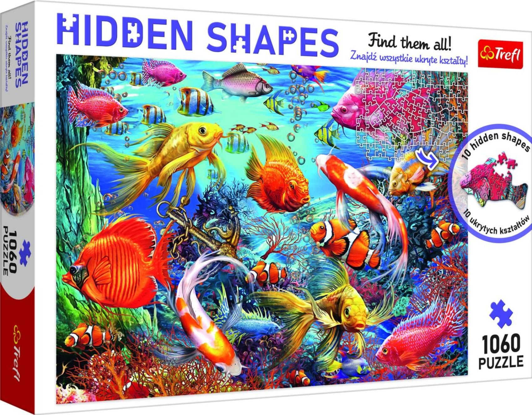 Popis Trefl Puzzle Život pod vodou - Skryté tvary 1060 dílků 68x48cm v krabici 40x27x6cm