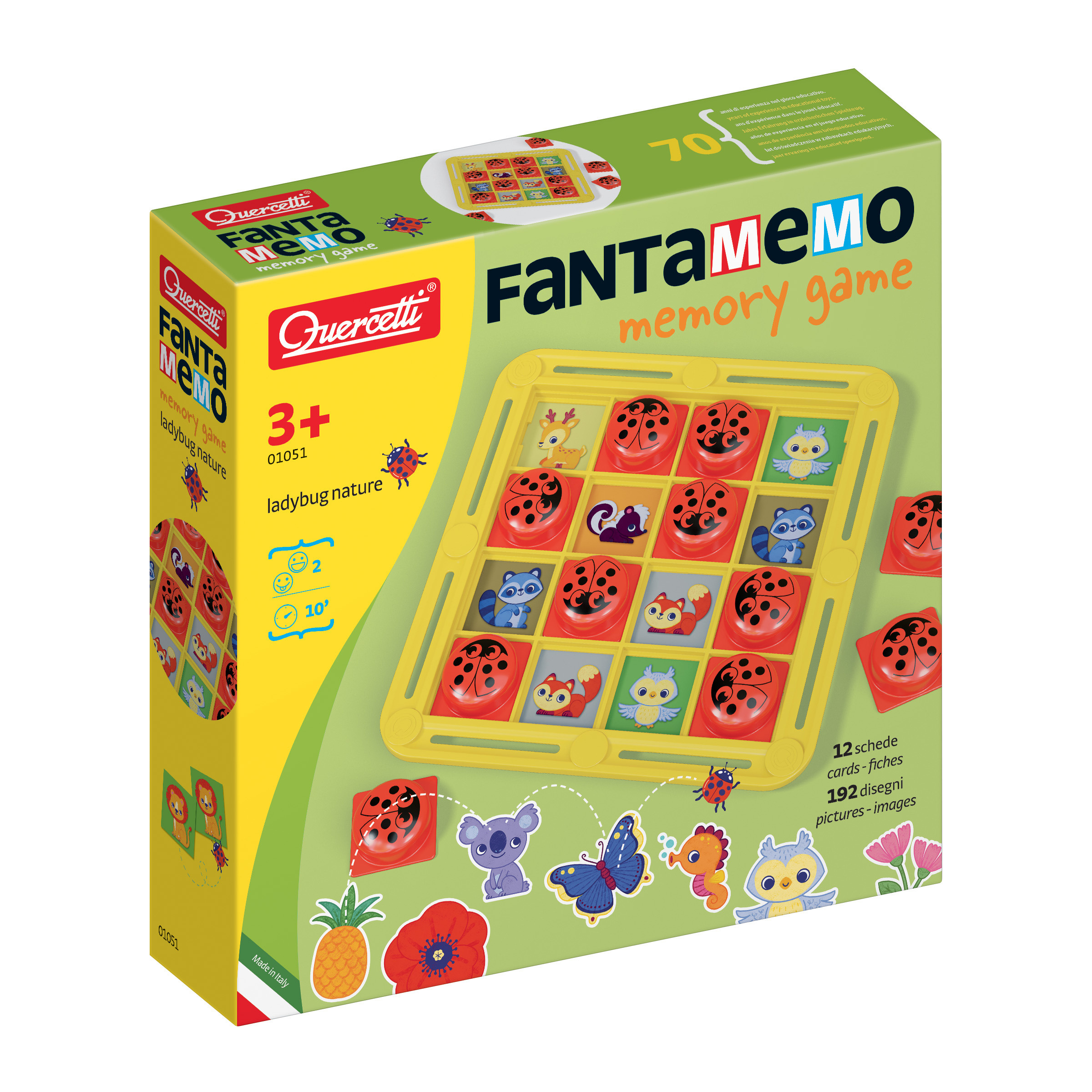 Zábavná hra na procvičení paměti na principu pexesa pro děti i celou rodinu. Fantamemo obsahuje 12 ilustrovaných výměnných karet a 192 originálních kreseb na procvičení vizuální paměti a schopnosti koncentrace. Vtipné kloboučky s beruškami přikryjí hrací plochu a vy musíte najít tu správnou dvojici obrázků ukrytých pod beruškami.Více