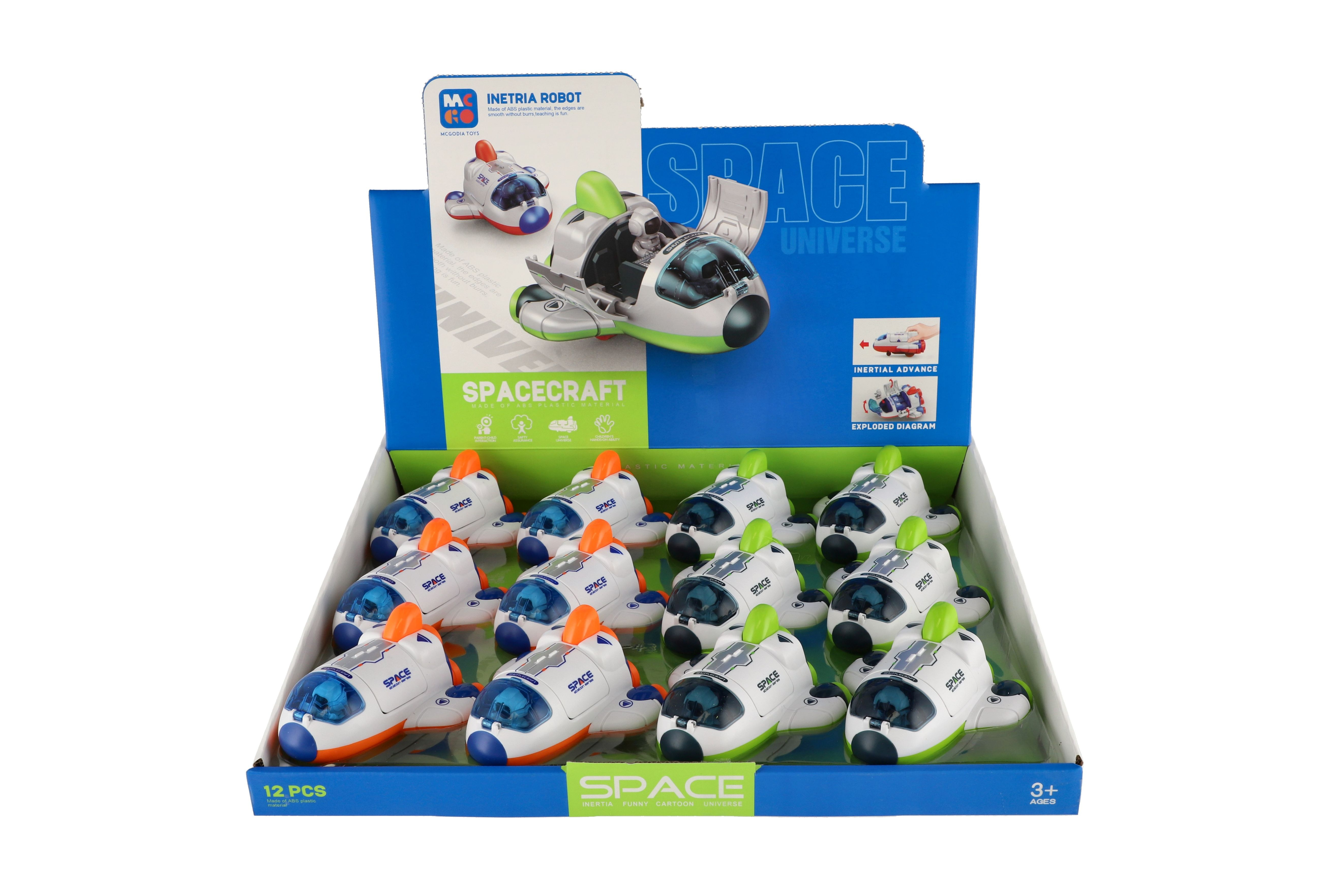 Teddies Raketoplán/raketa plast 10x11cm s kosmonautem na setrvačník 2 barvy