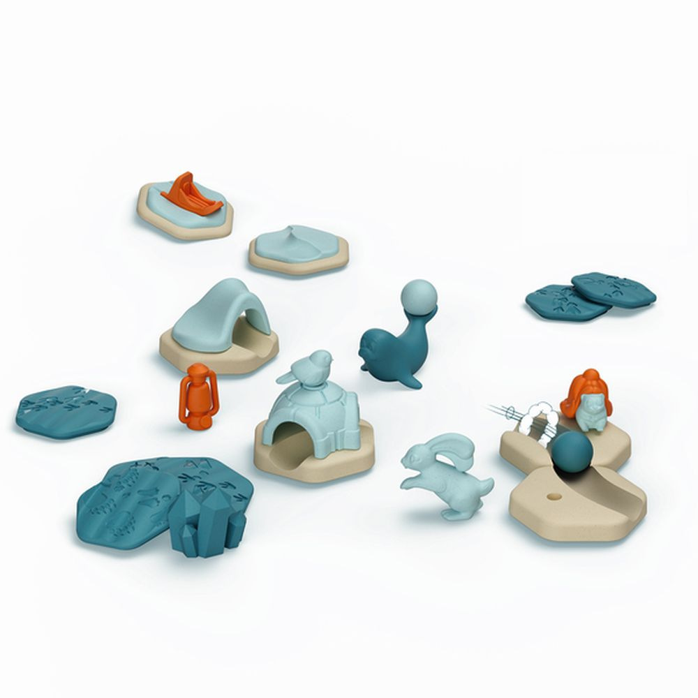 GraviTrax Junior je interaktivní systém kuličkové dráhy pro děti od 3 let. Ti nejmenší si staví své vlastní světy z kuličkových drah, které lze podle libosti zdobit a vytvářet tak jednotlivé tematické světy. Děti si tak při kreativním stavění užijí mnoho zábavy. Rozšíření Ledový svět obsahuje různé dekorační prvky a figurky zvířátek a rostlin ze světa plného ledu. Děti si tak sami mohou v rámci GraviTrax dráhy prozkoumat toto prostředí a začít dobrodružství na sněhu. Všechny stavební a dekorační součásti jsou vyrobeny z dřevěného bioplastu. Rozšíření obsahuje 34 stavebních a dekoračních prvků.
