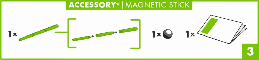 Magnetická hůlka pomáhá odstranit kuličky z těžko dostupných míst kuličkové dráhy a předchází tak jejímu zničení. Díky magnetické špičce je kulička přitahována jako mávnutím kouzelného proutku. Před prvním použitím se dá velmi snadno složit dohromady. Sada obsahuje také stříbrnou kuličku pro ještě větší zábavu při hře s kuličkovou dráhou.