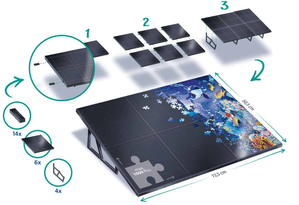 Polohovací podložka pro pohodlné skládání puzzle. Nastavte si svůj vlastní sklon, který vám při skládání puzzle bude vyhovovat.