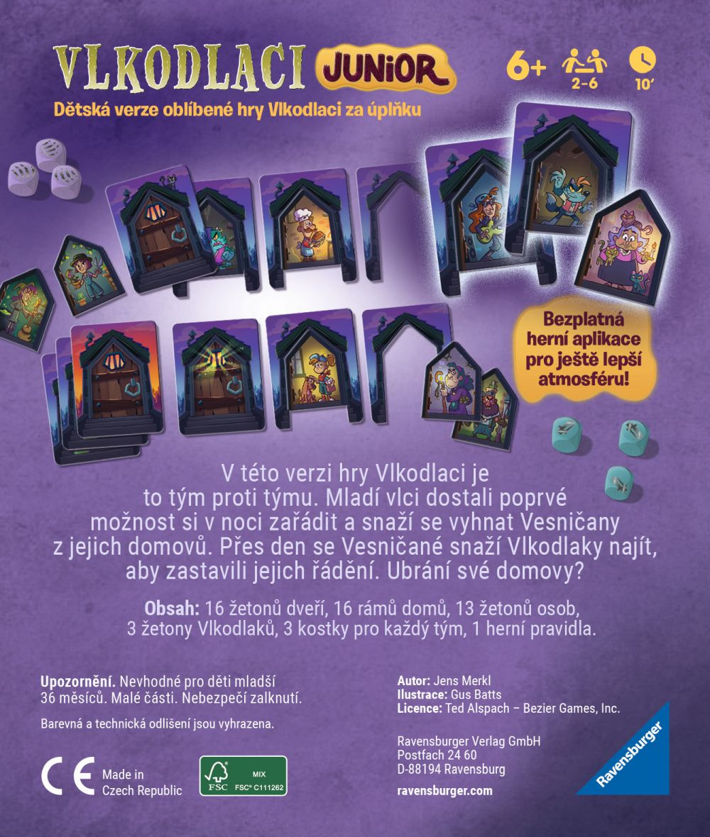 Nic pro malé strašpytly! Dokážete dobře klamat svoje protihráče? Nikdo si na vás nepřijde? Pak jste tu správně! Vklouzněte do jedné z rolí vesničané nebo vklodlaků a užijte si pořádné dobrodružství. Tato zábavná a napínavá společenská hra vás s rodiči nebo kamarády zabaví klidně na celé odpoledne. Nechce se nikdo z vás ujmout role moderátora? Nevadí. Součástí hry je aplikace, kterou si snadno a zdarma stáhnete do svého chytrého telefonu, a pomocí nahrávek za vás převezme roli moderátora a provede vás celou hrou.