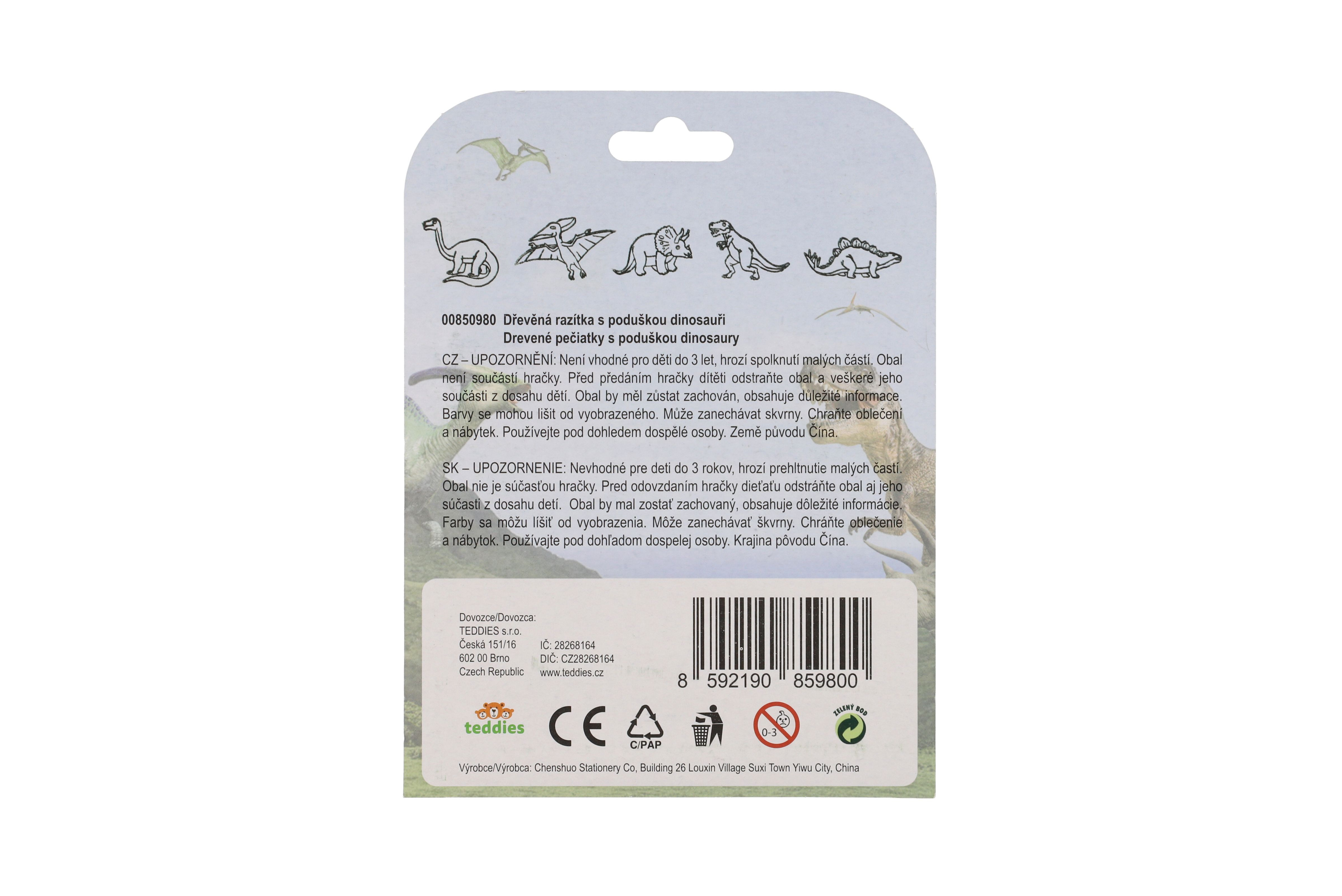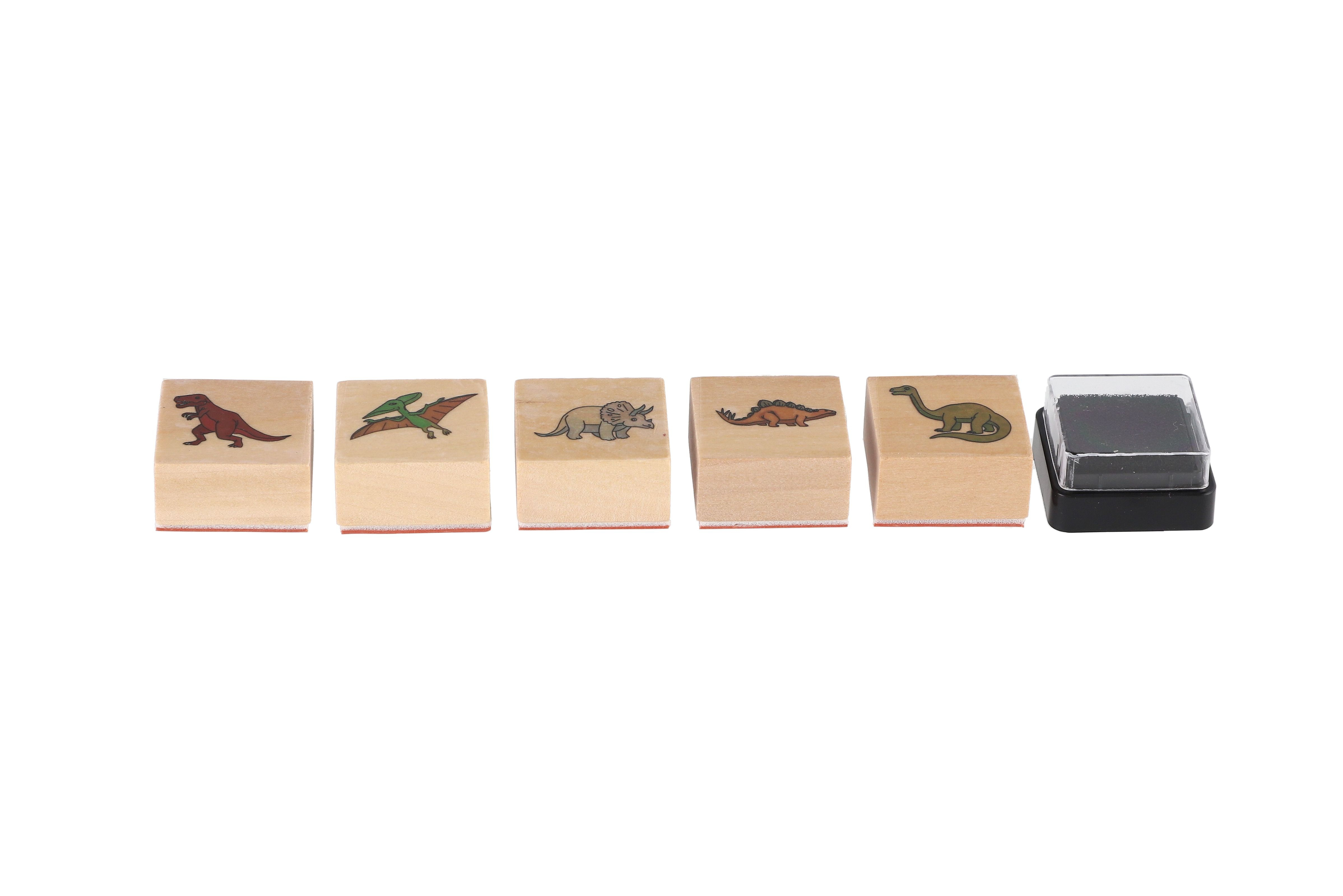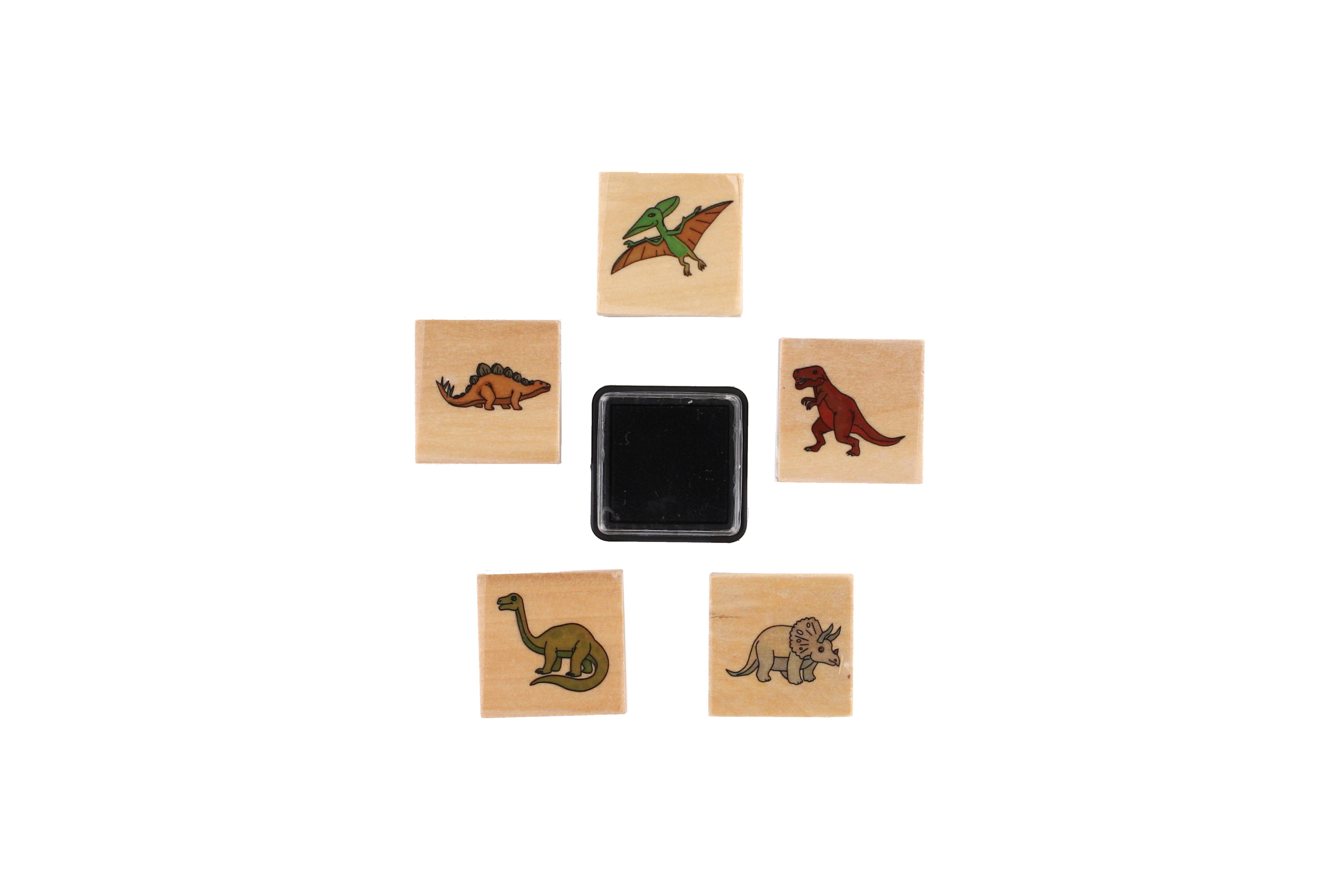 Teddies Razítka dřevěná 5+1 s poduškou dinosauři 3x3cm na kartě