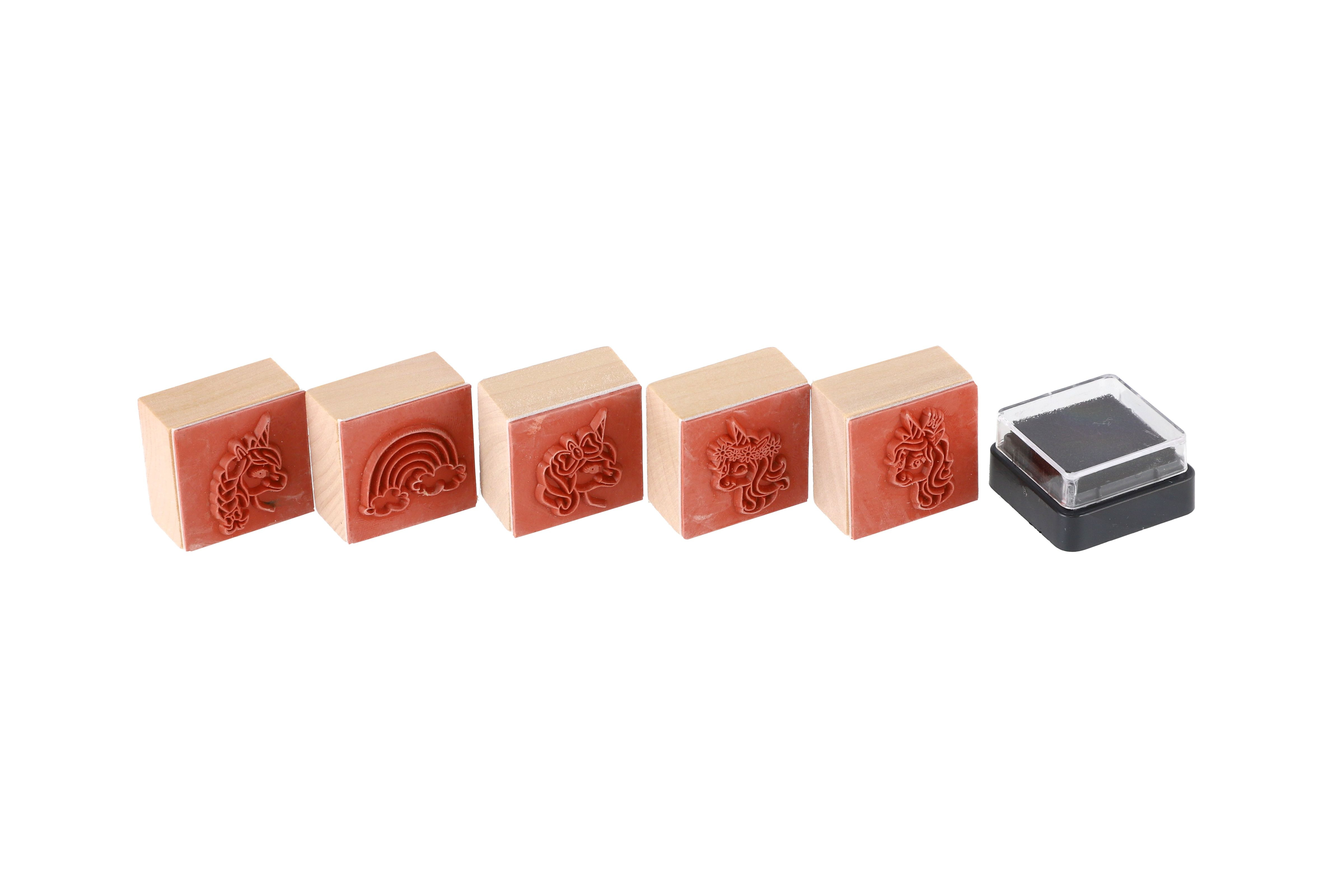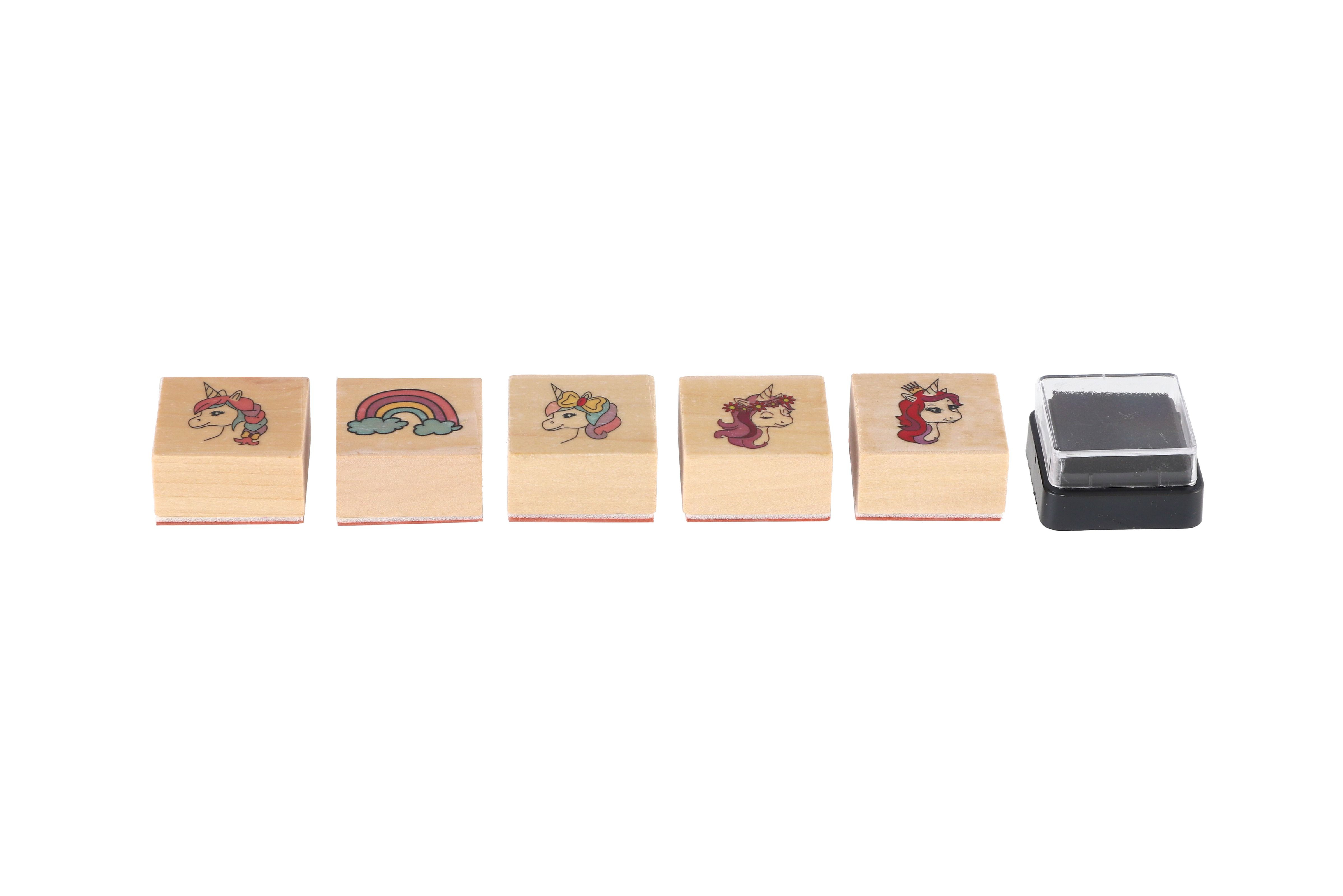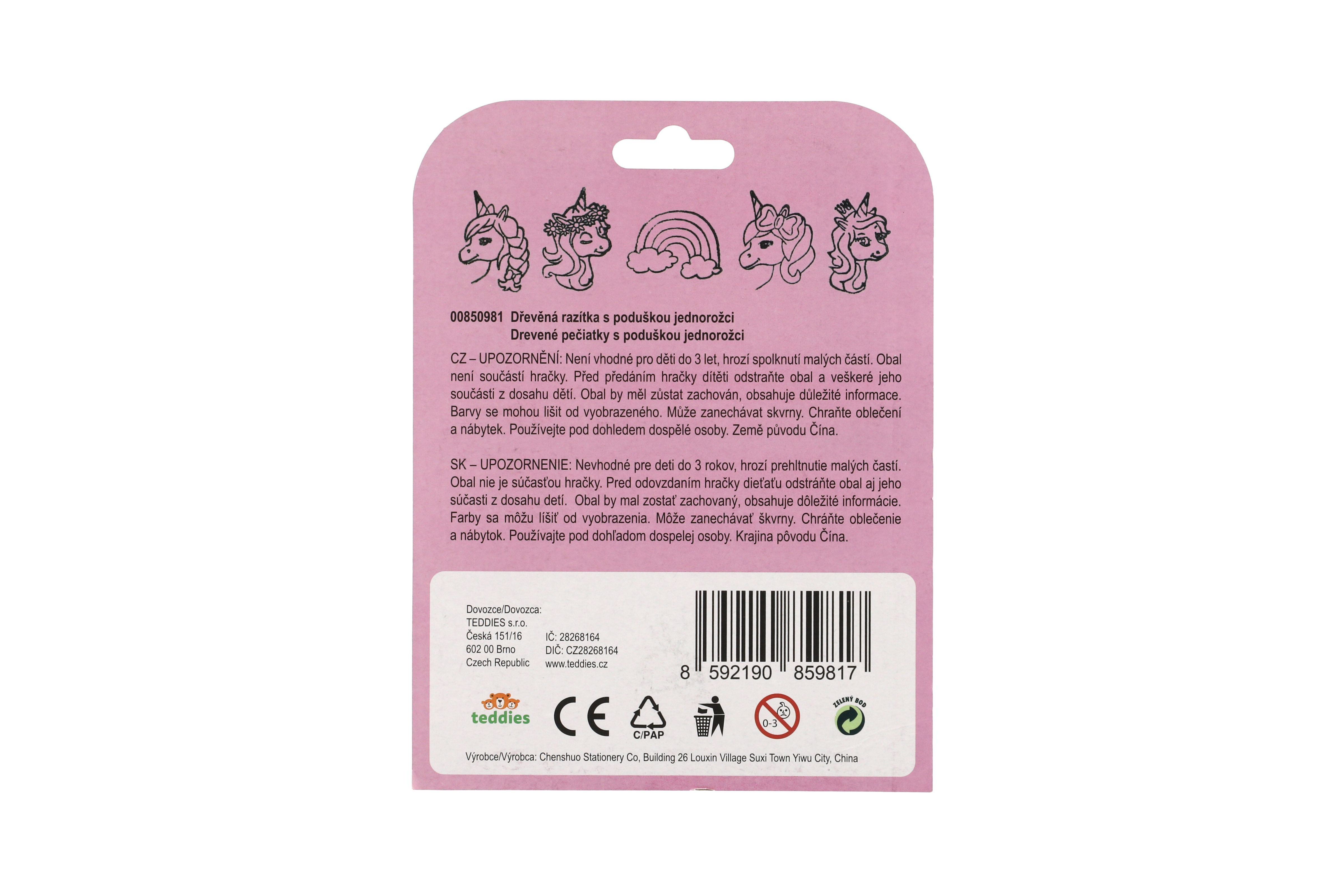 Teddies Razítka dřevěná 5+1 s poduškou jednorožci 3x3cm na kartě