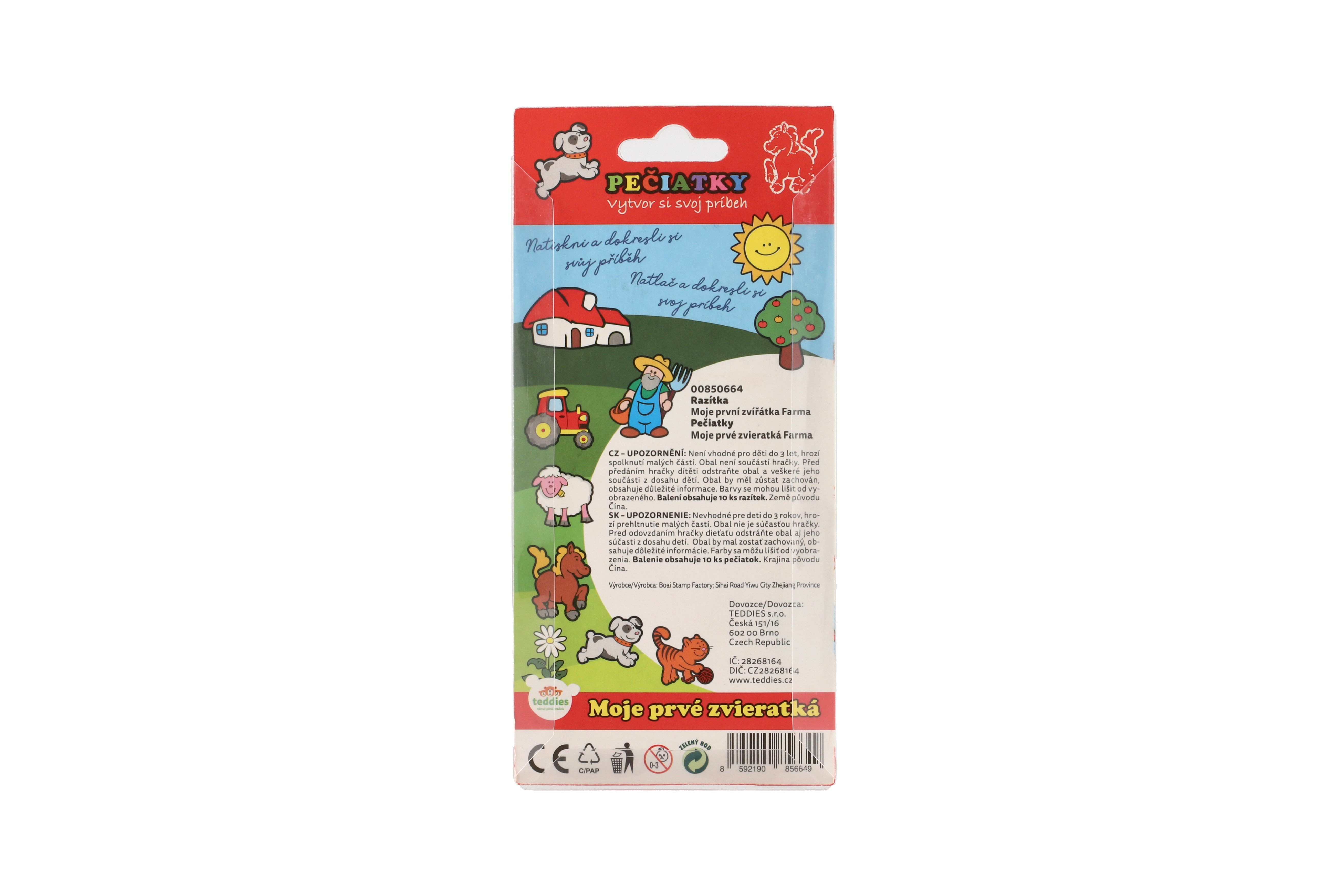 Razítka samotiskací Moje první zvířátka plast 10ks 2,5x4cm na kartě