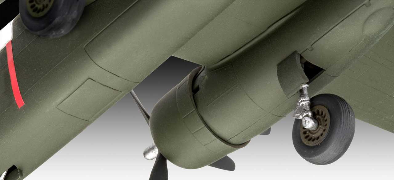 - Podvozek - Zacvakávací stavebnice, není potřeba nic lepit - Pohyblivé vrtule - Replika interiéru - 2 piloti