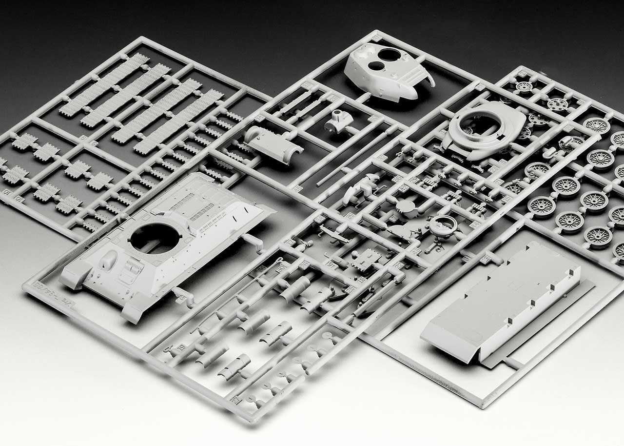 Informace o modelu: Stavebnice legendárního sovětského tanku z doby druhé světové války. - Pohyblivá dělová věž - 85 mm dělo - Vstřikováním odlité pásy s jednotlivými spoji a dílci