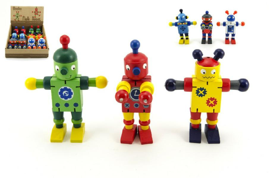 Teddies Robot dřevo 12cm asst 6 druhů, od 18 měsíců . Cena za 1 ks.