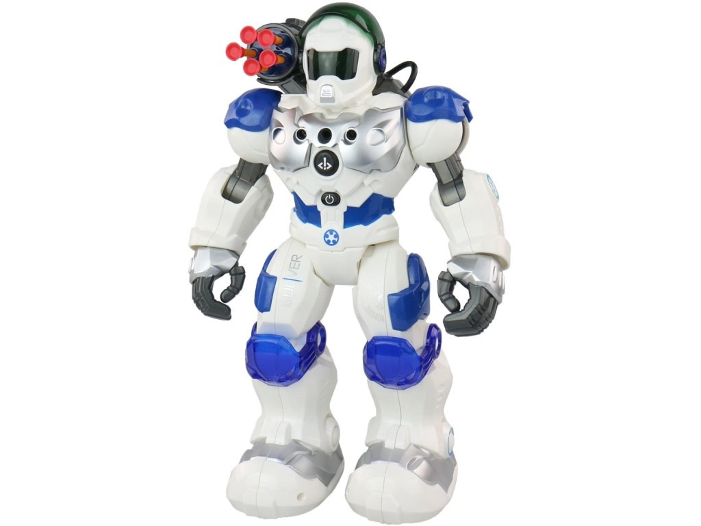 Součástí balení je: Robot, nabíjecí kabel USB, ovládání, 5x střela do kanónu, návod
