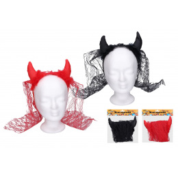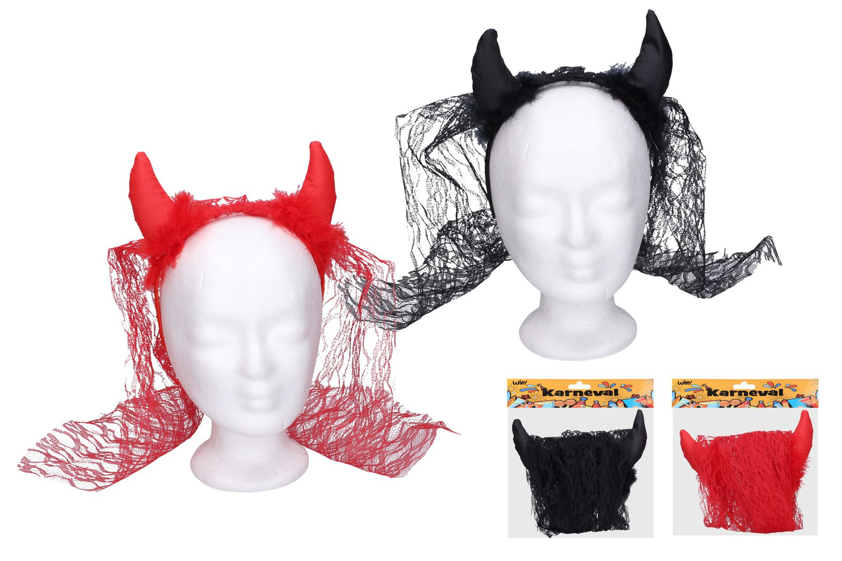 Wiky Rohy čertovské se závojem čelenka látka/plast 2 barvy v sáčku 22x25cm karneval