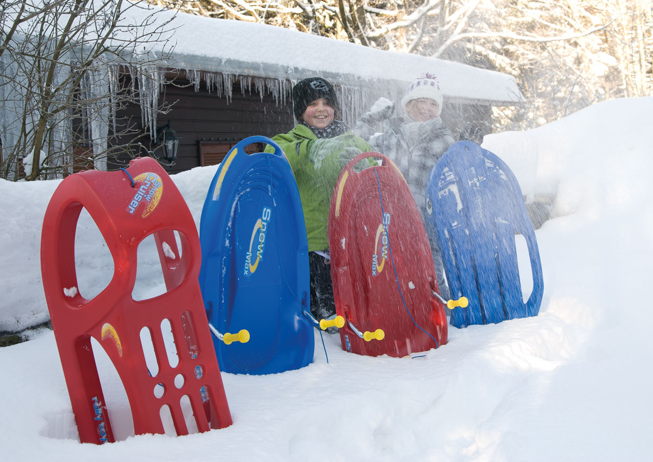 Extra stabilní červené boby vyrobené z kvalitního plastu, vynikají kovovými brzdami. Boby mají v přední části šňůru. Váha bobu 2 kg, rozměry: 93 x 41 x 22 cm. Věk: 3+