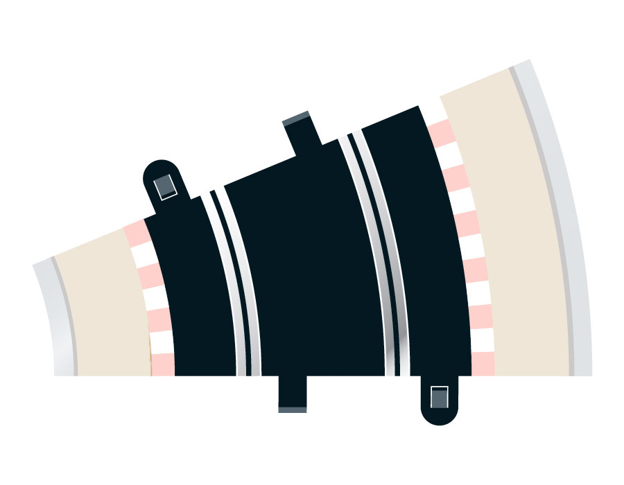 Vnitřní okraj zatáčky pro autodráhu Scalextric - rozšíření trati. Velikost: R2, 4x 22,5°.