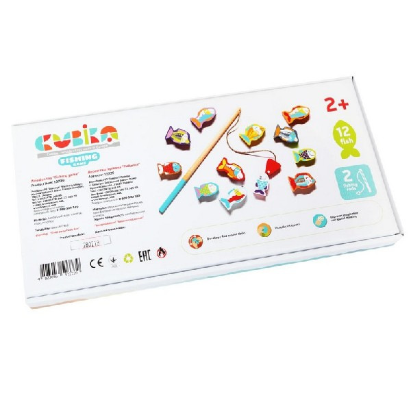 CUBIKA je nová značka dřevěných hraček vyrobených pouze z ekologicky pěstovaného dřeva s velmi precizním opracováním a líbivým designem. Rybolov je známá hra pro děti, jejímž cílem je vylovit co nejrychleji nejvíce rybiček z rybníka. K tomu slouží dva pevné dřevěné pruty opatřené na svých koncích magnetem, protože každá rybička má v sobě zabudovaný kovový plíšek. Rybky pak vyskakují z vody jako živé. Délka prutů 31 cm, délka tkaniček 30 cm. Rybičky ve 3 velikostech: 4,5 x 2x 3 cm, 6 x 2 x 3 cm a 6,5 x 2 x 3 cm. Sortiment hraček značky CUBIKA pomáhá dětem rozvíjet především senzomotorické schopnosti a dovednosti, logické myšlení, kreativitu, představivost a různé poznávací znalosti. Hračky jsou vyrobeny z nejkvalitnějšího javoru a buku a k barvení se používají též vysoce kvalitní barvy na vodní bázi, které jsou naprosto bezpečné pro děti a nemají žádný zápach. Všechny výrobky této značky mají německý certifikát TÜV a jsou vyrobeny dle evropské normy pro bezpečnost hraček EN 71. Nevhodné pro děti do 2 let. Vyrobeno v Evropě.