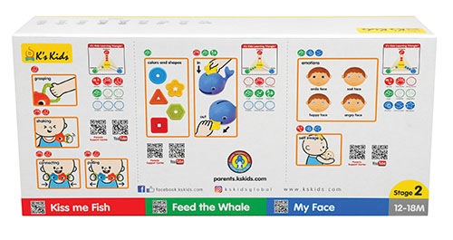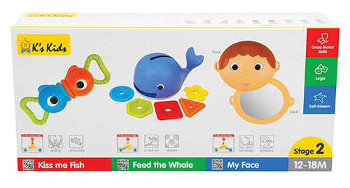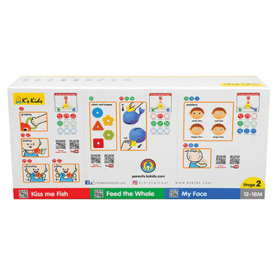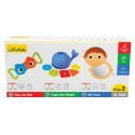 Sada 3 vývojových hraček obsahuje hračky, které rozvíjí fantazii, představivost a jemnou motoriku těch nejmenších. Balení obsahuje: rybičky, které učí dítě fyzické zdatnosti díky překonávání odporu (17,5 x 7 x 5,5 cm), velrybu pro výuku tvarů (10 x 7,5 x 14 cm) a dětské zrcátko pro výuku a vyjádření výrazů obličeje a emocí (14 x 11 cm). Hračky jsou vyrobeny z kvalitních a odolných materiálu a jsou tak vhodné i pro vaše nejmenší. Věk: 12m+