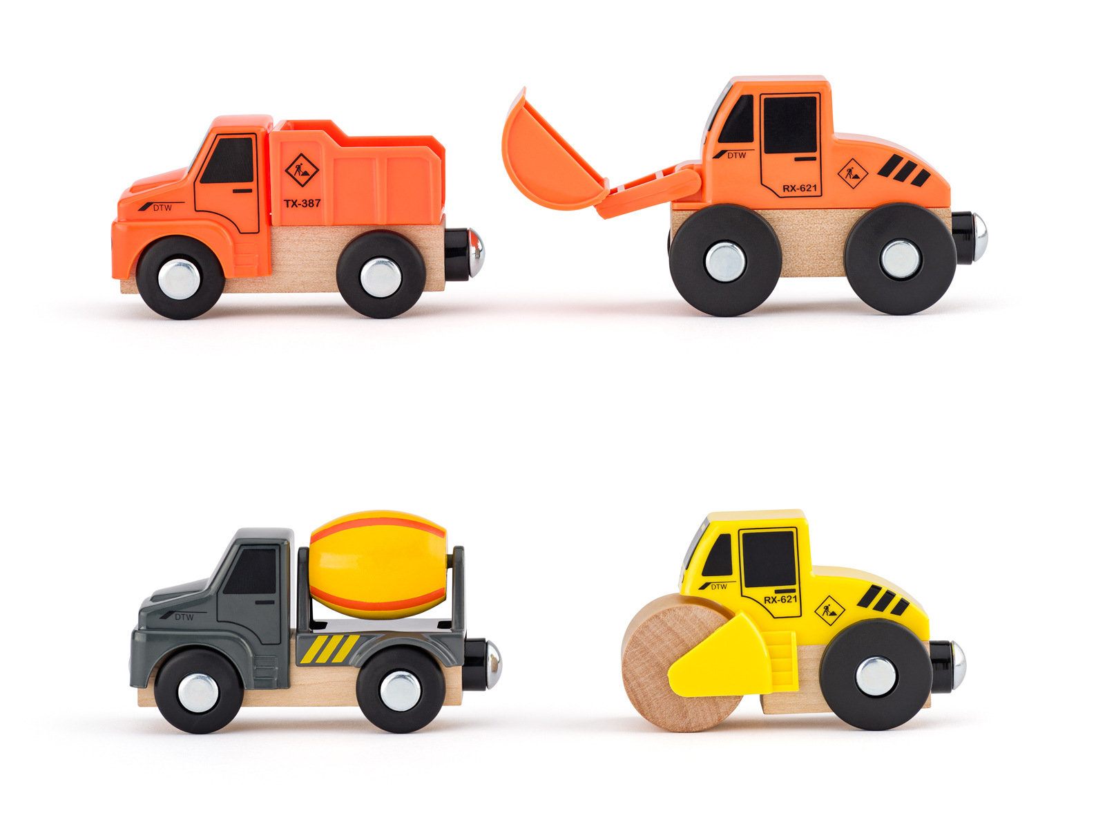 Plastová mašinka vhodná do dřevěných vláčkodráh s funkcí vpřed / vzadu / zvuk. Obsahuje 2 figurky s polohovacími končetinami. Figurku řidiče umístíme na své místo vyklopením předního průhledného skla.