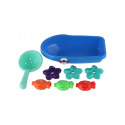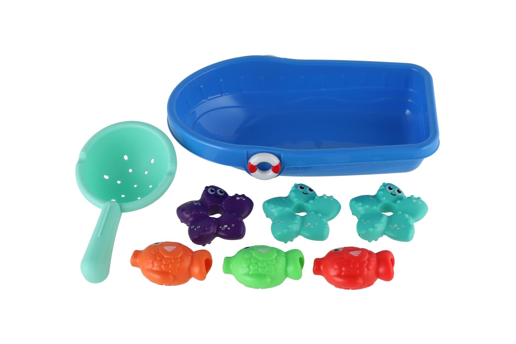 Zpestřete dětem koupání barevnou sadou do vany! Obsahuje plastovou lodičku, sítko a roztomilá mořská zvířátka, která lze chytat nebo se s nimi jen tak bavit ve vodě. Hra rozvíjí jemnou motoriku i fantazii a promění každou koupel v malé vodní dobrodružství. Rozměr balení: 14 × 24 cm Vhodné pro děti od 3 let
