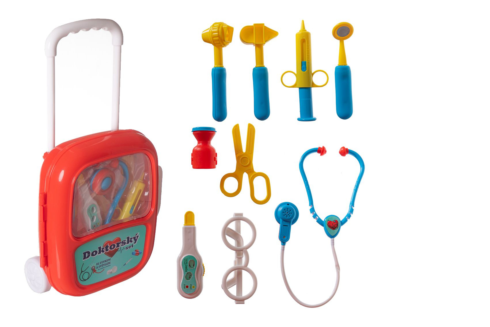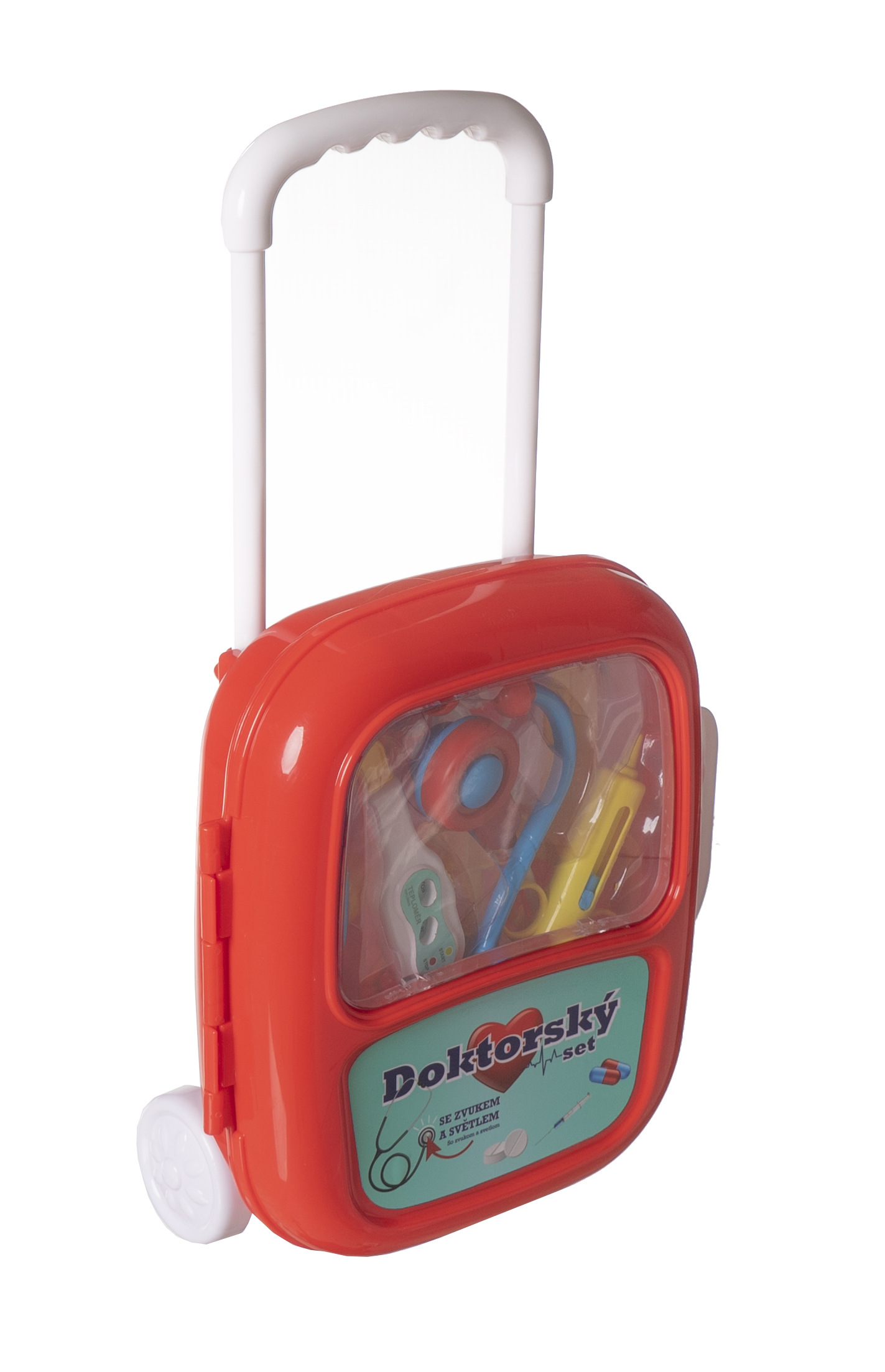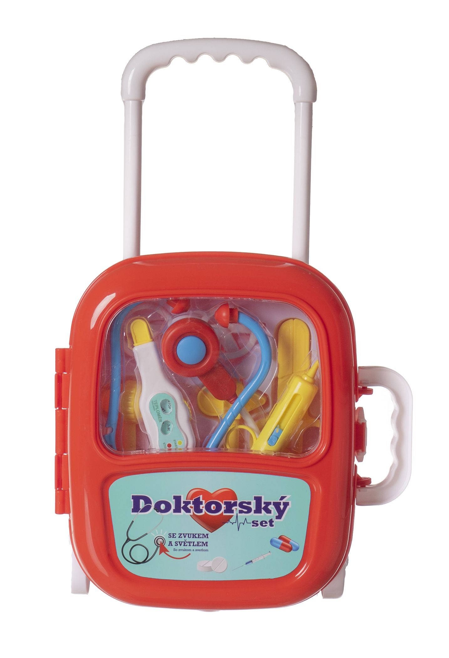 Teddies Sada doktor/lékař plast se stetoskopem na baterie v plastovém kufříku na kolečkách 24x33x10cm