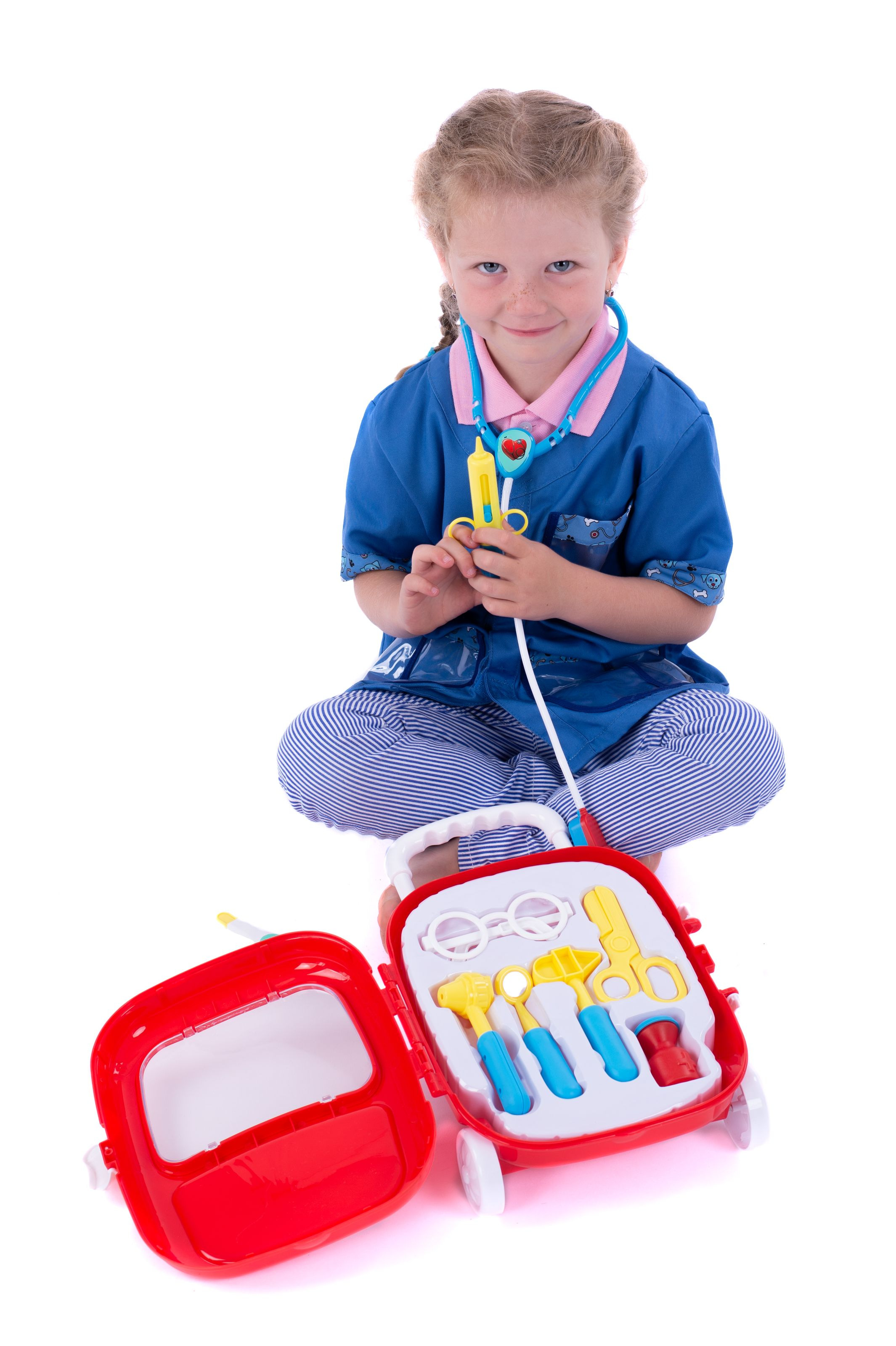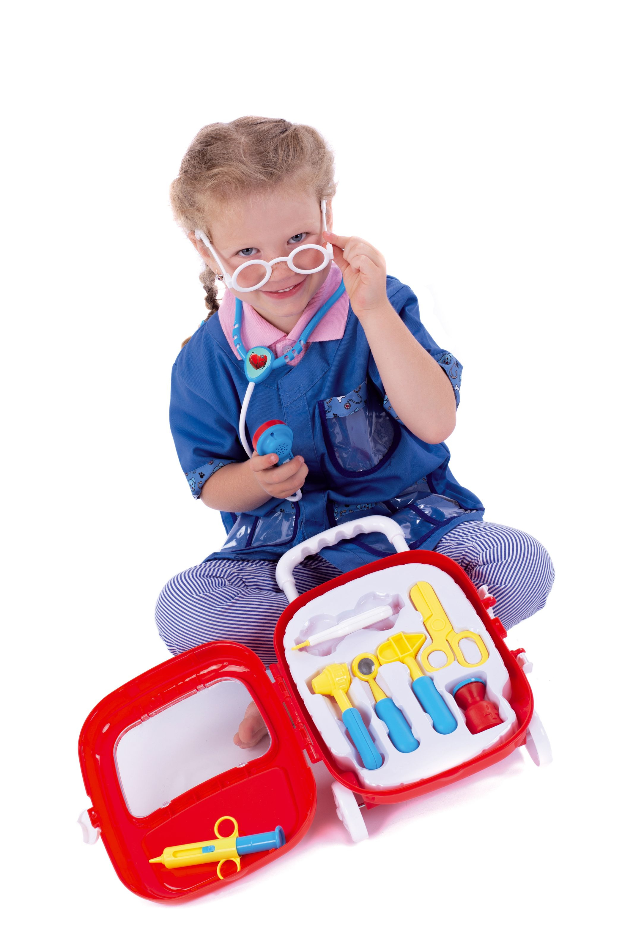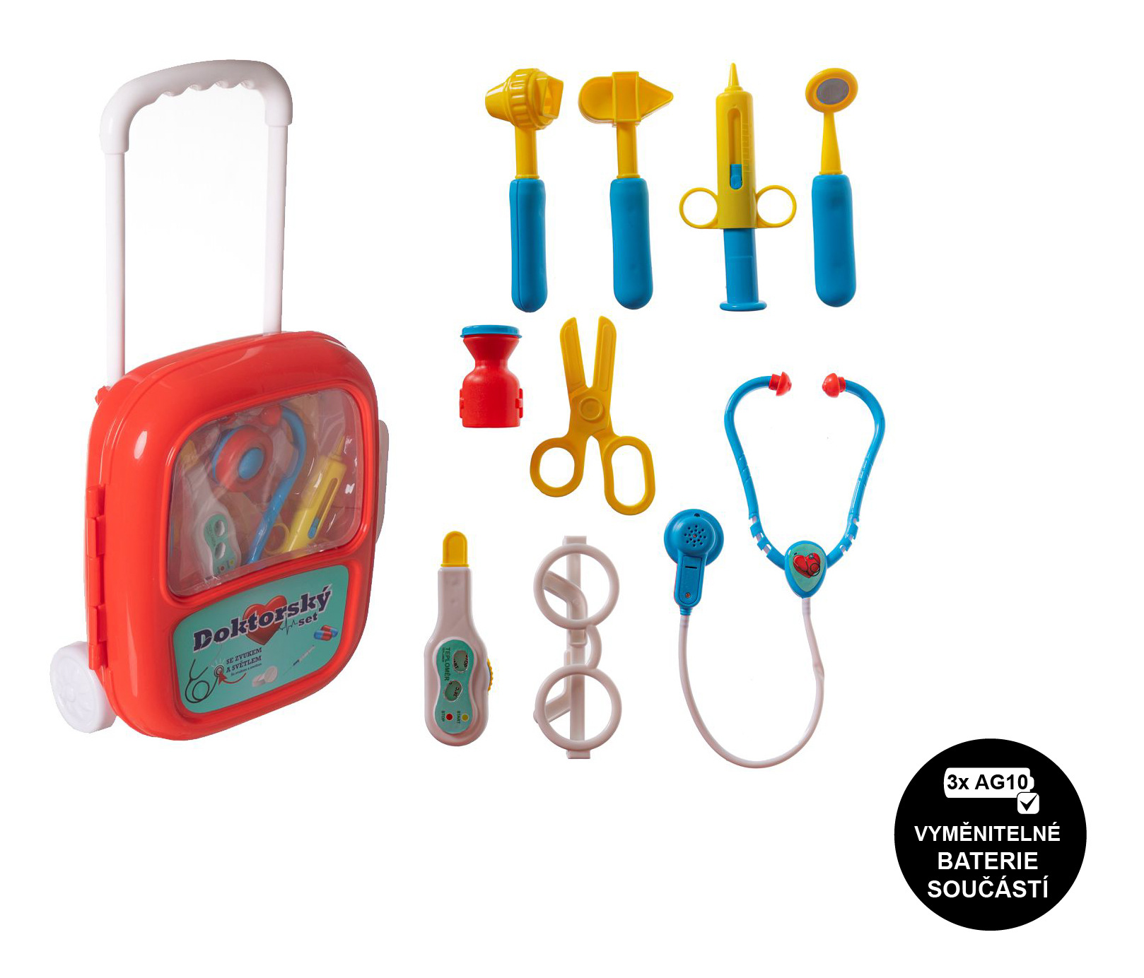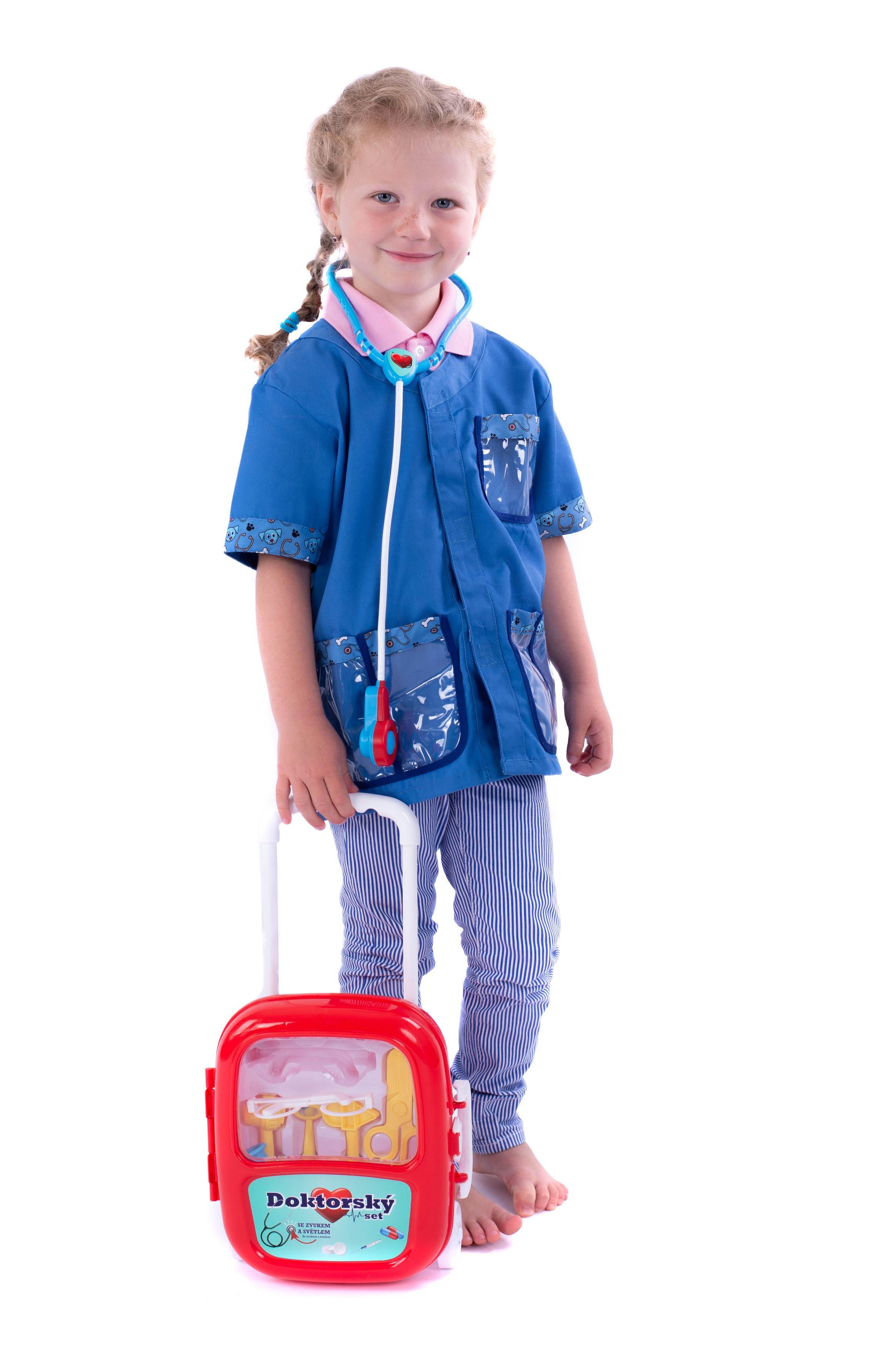 Teddies Sada doktor/lékař plast se stetoskopem na baterie v plastovém kufříku na kolečkách 24x33x10cm