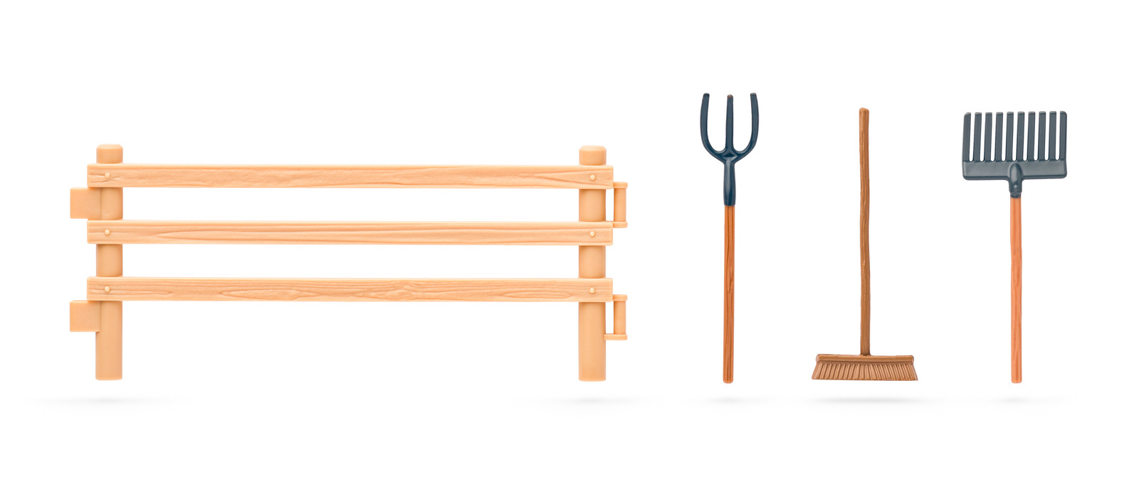 Ohrada s westernovým vjezdem je to pravé prostředí pro trénink a výběh tvých koníků. Sada obsahuje koně s jezdcem, hříbě, ošetřovatele a další příslušenství. | Počet figurek: 4 | Počet dílů: 22 | Věk: 3+ | Velikost koně: 12 x 10 cm