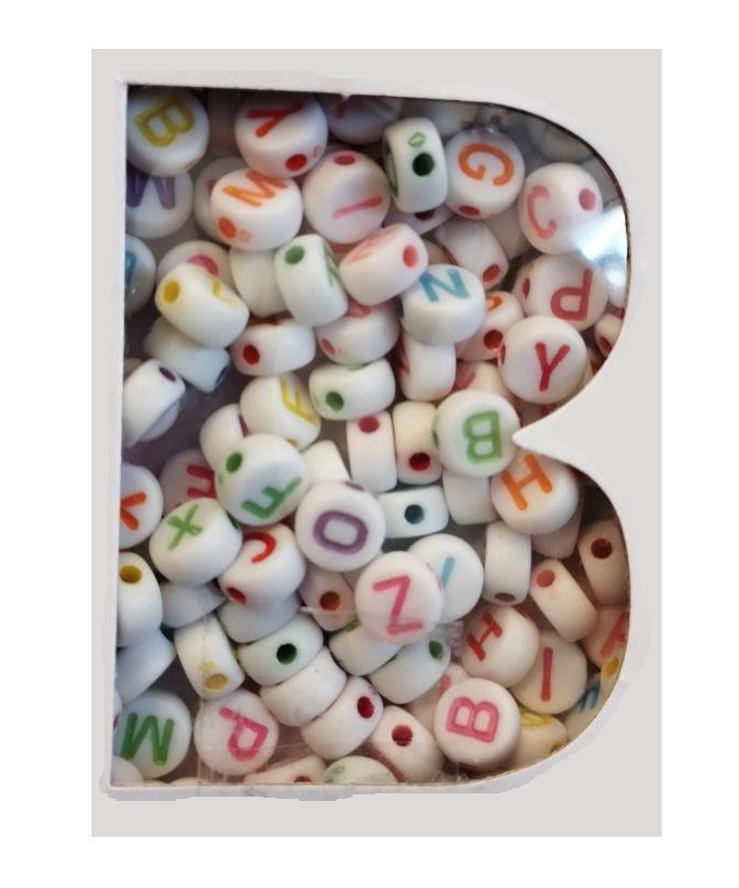 Popis Rappa Sada korálků - písmenka bílé + 1 metr provázek