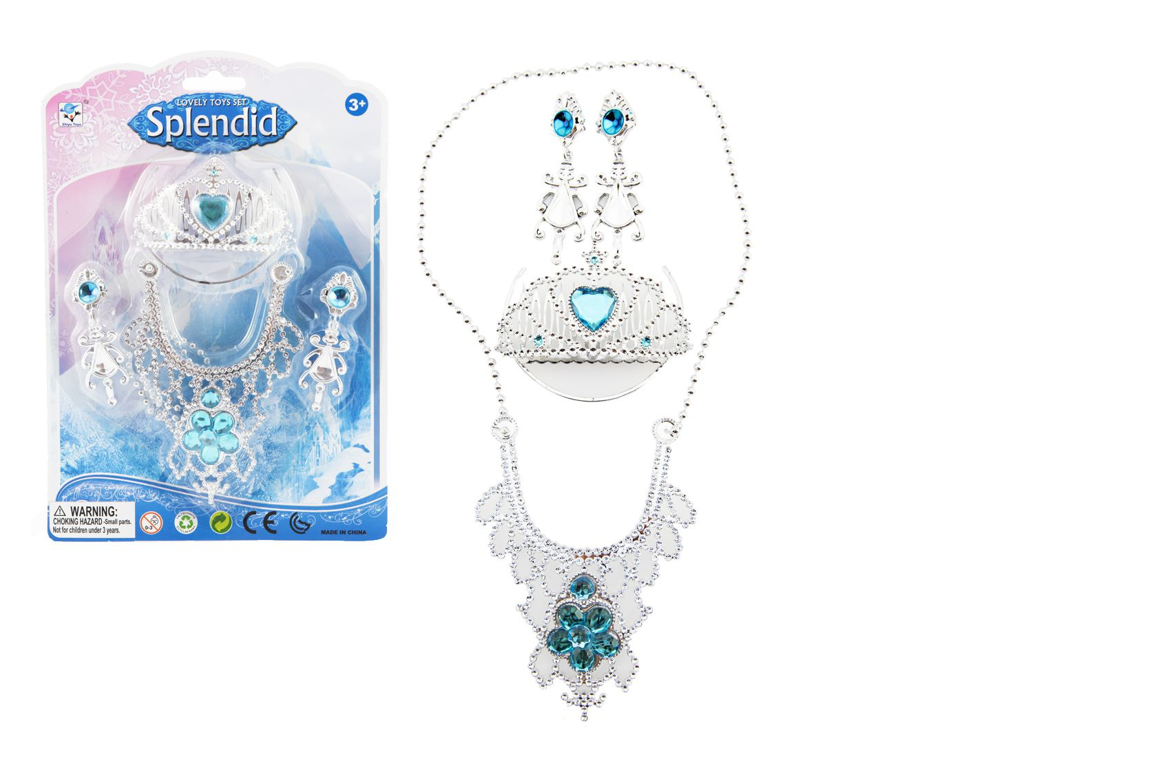 Teddies Sada krásy plast korunka, náhrdelník, naušnice na kartě 18x25cm