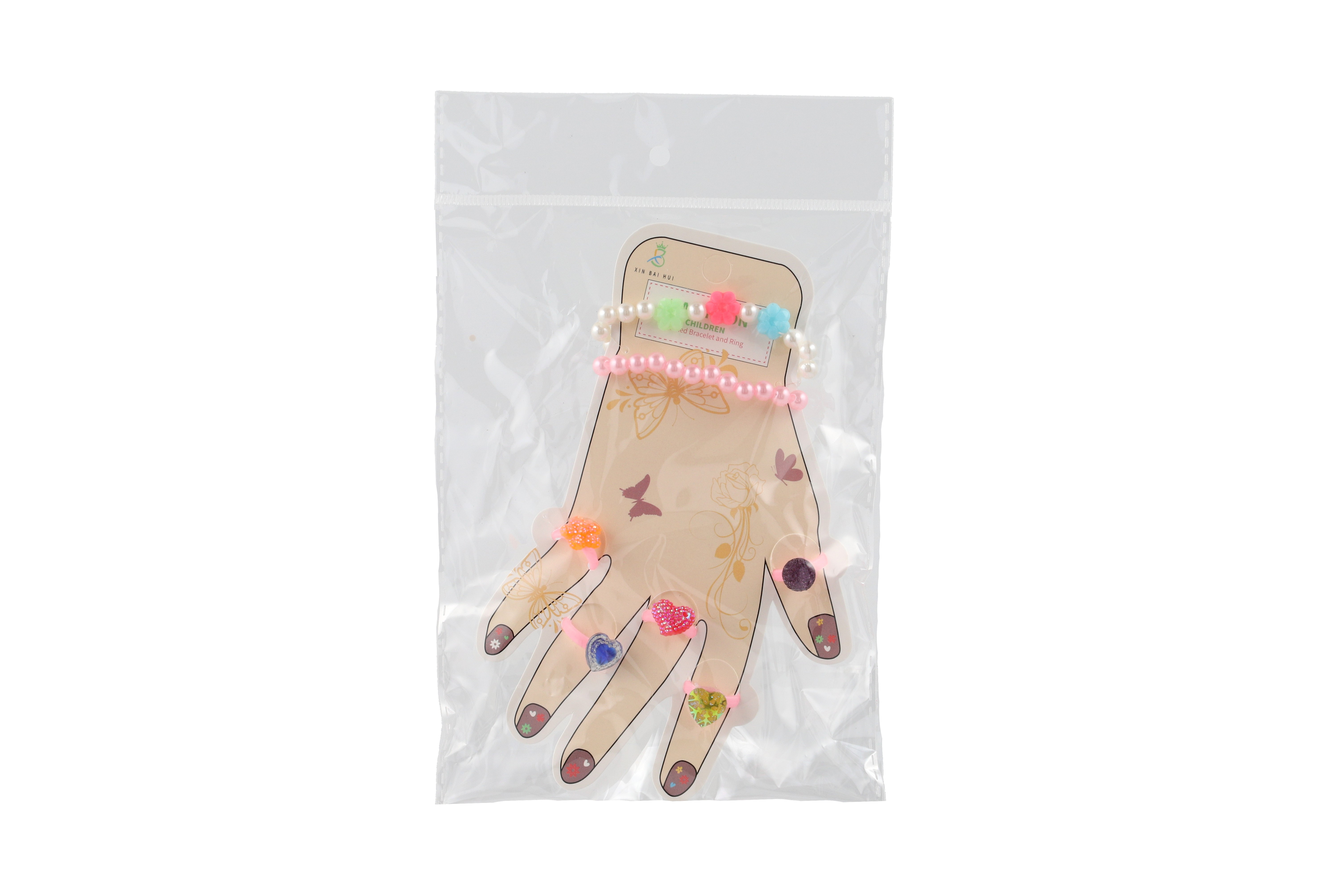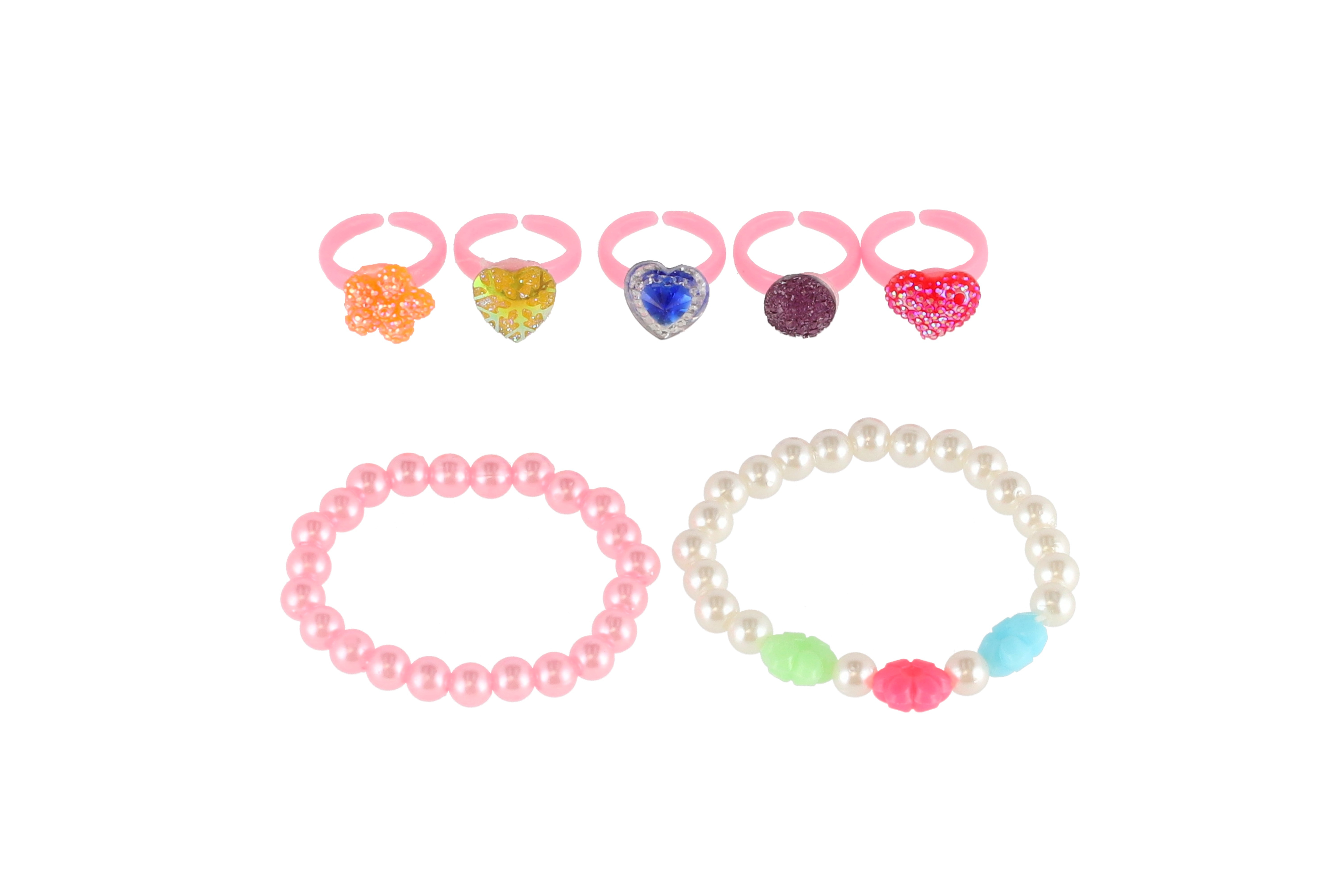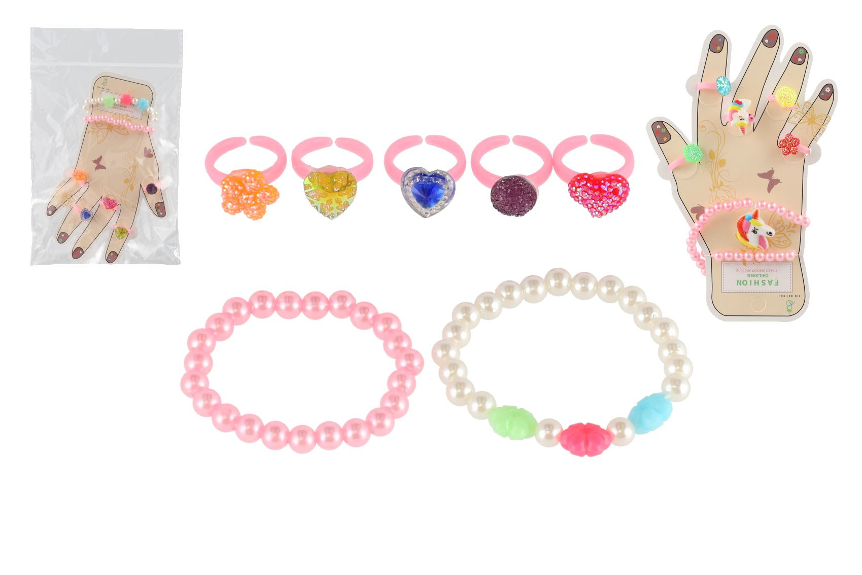 Popis Teddies Sada krásy plast prstýnky 5ks + náramky 2 ks 2 druhy v sáčku 12x17cm